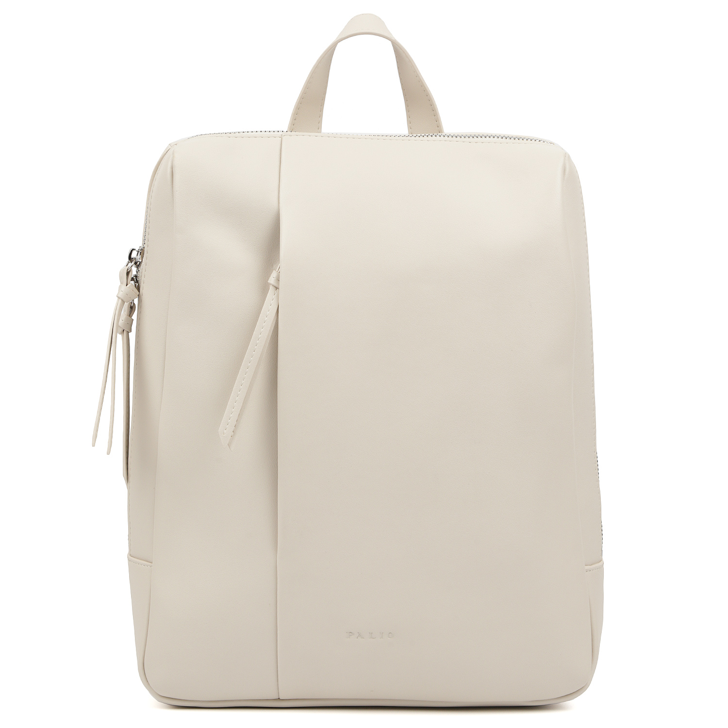 Стильный рюкзак PALIO выполнен из натуральной кожи в светло-бежевом оттенке. Основное отделение закрывается на молнию с 2 бегунками. Внутри предусмотрены текстильные вставки, защищающие содержимое от выпадения. Рюкзак оснащен продуманной системой боковых карманов, позволяющих аккуратно хранить мелочи и, при необходимости, быстро находить их. 2 боковых кармана на молнии, 2 открытых кармана, органайзер для ручек, 4 кармашка для проездных и карт. Со стороны уплотненной стеганой спинки есть вместительный отдел, куда поместится планшет. На лицевой стороне расположен вертикальный карман на молнии с удобным кожаным поводком. На тыльной стороне расположен вертикальный карман быстрого доступа на молнии. Лямки шириной 2,5 см. легко регулируются по длине. Сверху есть ручка, позволяющая комфортно носить изделие в руке. Цвет фурнитуры - серебро.