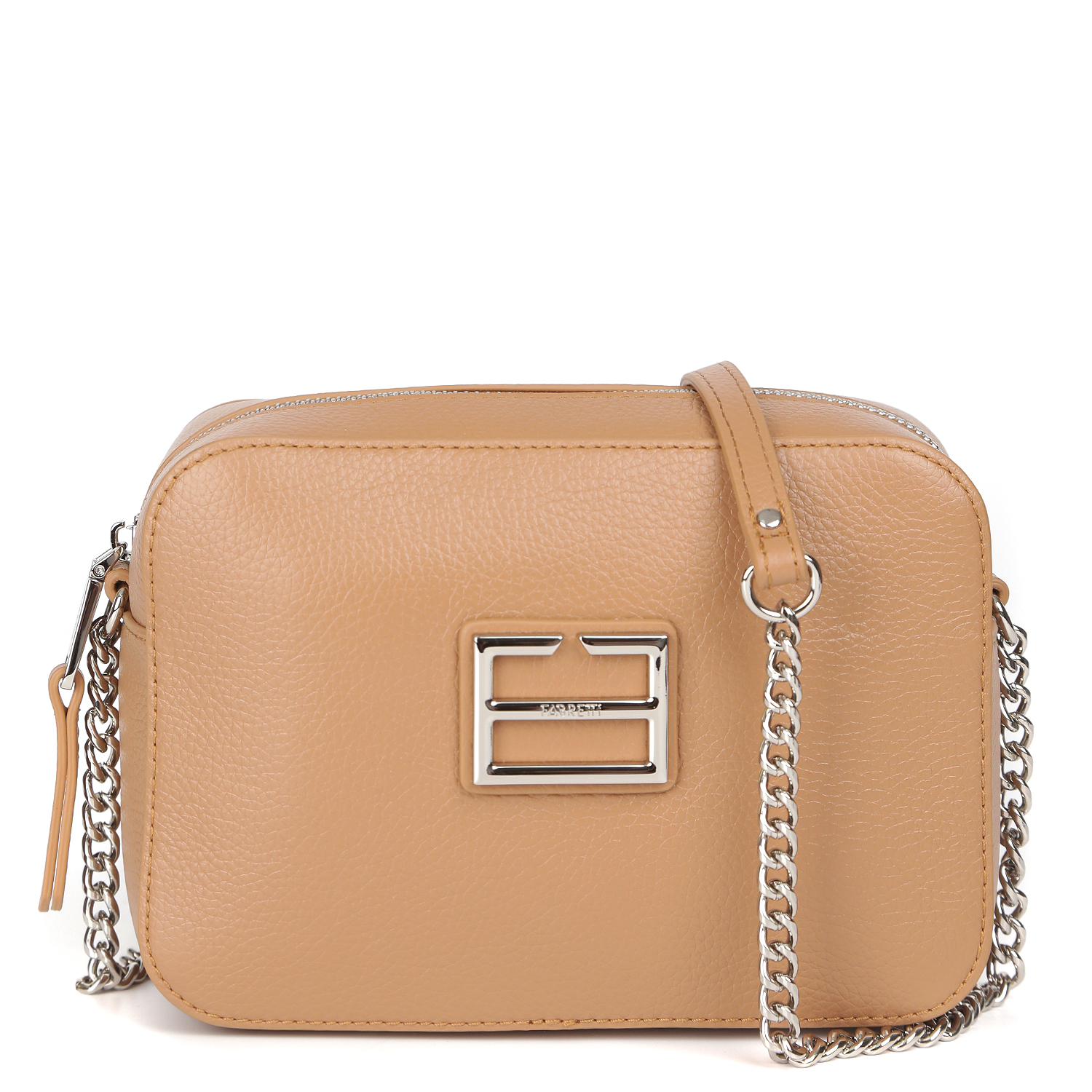 Компактная кросс-боди FABRETTI выполнена из натуральной зернистой кожи в рыжем оттенке. Основное отделение закрывается на полукруглую молнию с кожаным поводком. Внутри 2 боковых кармана: открытый и на молнии. На тыльной стороне предусмотрен карман быстрого доступа на молнии. На лицевой стороне аксессуар декорирован лаконичной монограммой бренда. Изящный плечевой ремень-цепочка позволяет комфортно носить аксессуар через плечо. Цвет фурнитуры - серебро. В сумке поместятся смартфон, паспорт, небольшой кошелек, ключи, разные женские мелочи и даже маленькая книга из серии pocket-books.