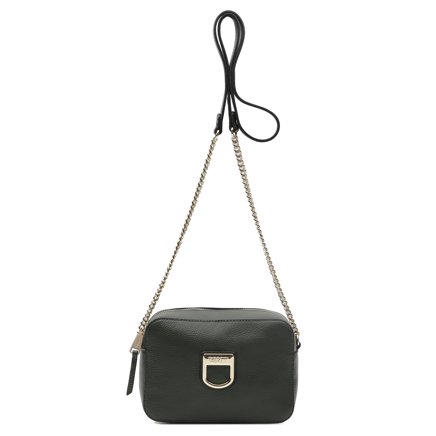 Компактная кросс-боди FABRETTI выполнена из натуральной зернистой кожи в темно-зеленом цвете. Основное отделение закрывается на молнию с удобным кожаным поводком. Внутри – 2 боковых кармана: открытый и на молнии. На тыльной стороне предусмотрен карман быстрого доступа на молнии. На лицевой стороне аксессуар декорирован лаконичной монограммой бренда. Изящный плечевой ремень-цепочка несъемный, длина не регулируется. Фурнитура под серебро гармонично дополняет общий дизайн изделия. В сумке поместятся смартфон, паспорт, небольшой кошелек, ключи, разные женские мелочи и даже маленькая книга из серии pocket-books.
