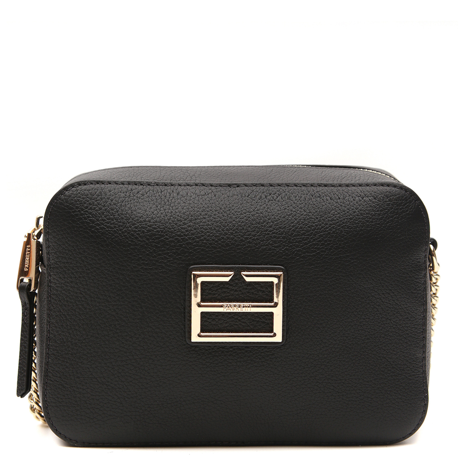 Компактная кросс-боди FABRETTI выполнена из натуральной зернистой кожи в черном цвете. Основное отделение закрывается на молнию с удобным кожаным поводком. Внутри – 2 боковых кармана: открытый и на молнии. На тыльной стороне предусмотрен карман быстрого доступа на молнии. На лицевой стороне аксессуар декорирован лаконичной монограммой бренда. Изящный плечевой ремень-цепочка несъемный, длина не регулируется. Фурнитура под золото гармонично дополняет общий дизайн изделия. В сумке поместятся смартфон, паспорт, небольшой кошелек, ключи, разные женские мелочи и даже маленькая книга из серии pocket-books.