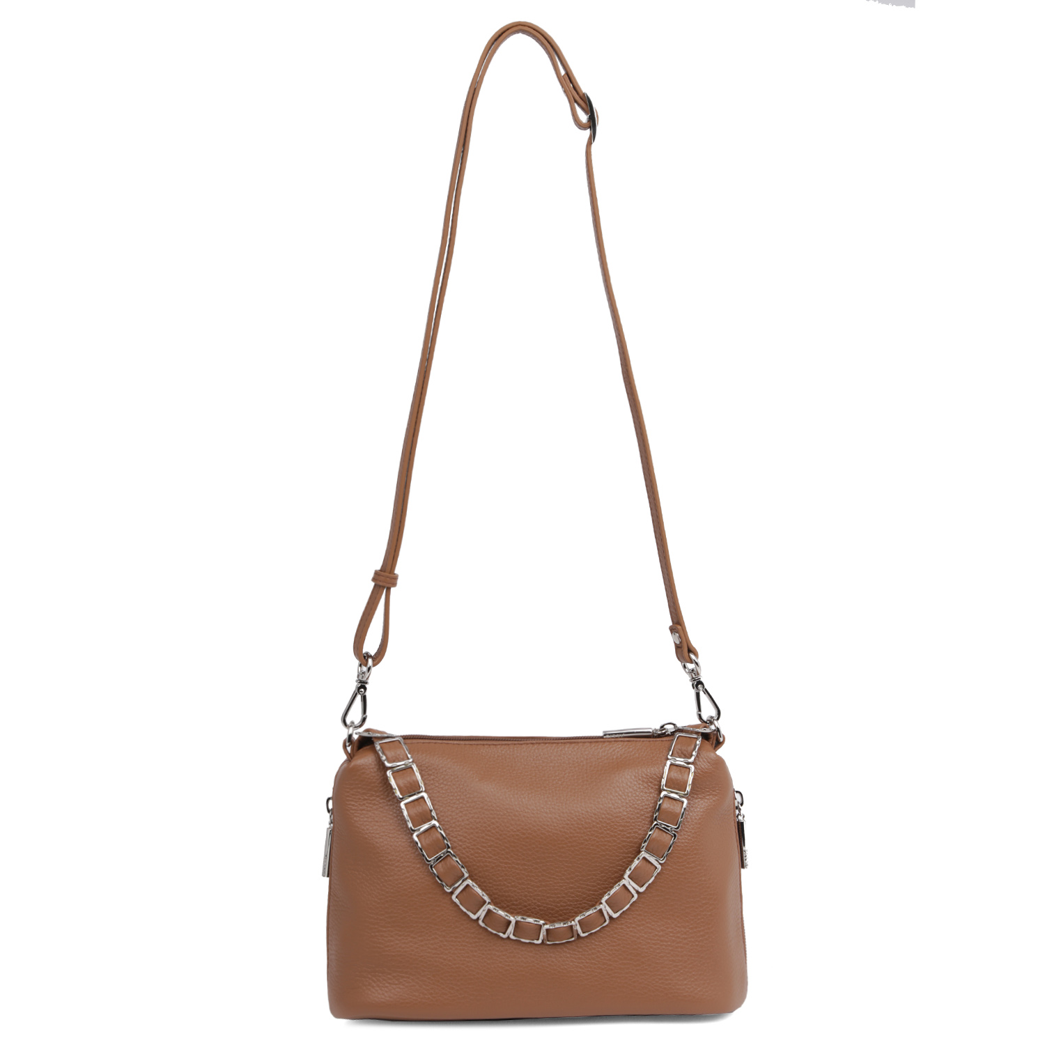 Стильная сумка через плечо от PALIO выполнена из натуральной мягкой зернистой кожи в рыжем цвете. Мягкая конструкция и декор на ручке делает данную модель практичной. Идеальный размер для прогулок. Основное отделение закрывается на молнию с удобным поводком. Внутри расположены 2 отсека, разделенные средником на молнии. В одном имеется карман на молнии, в другом - 2 открытых кармана для смартфона и мелочей. На внешних боковых стенках - удобные вертикальный кармашки быстрого доступа на молнии. Съемный плечевой ремень регулируется по длине.