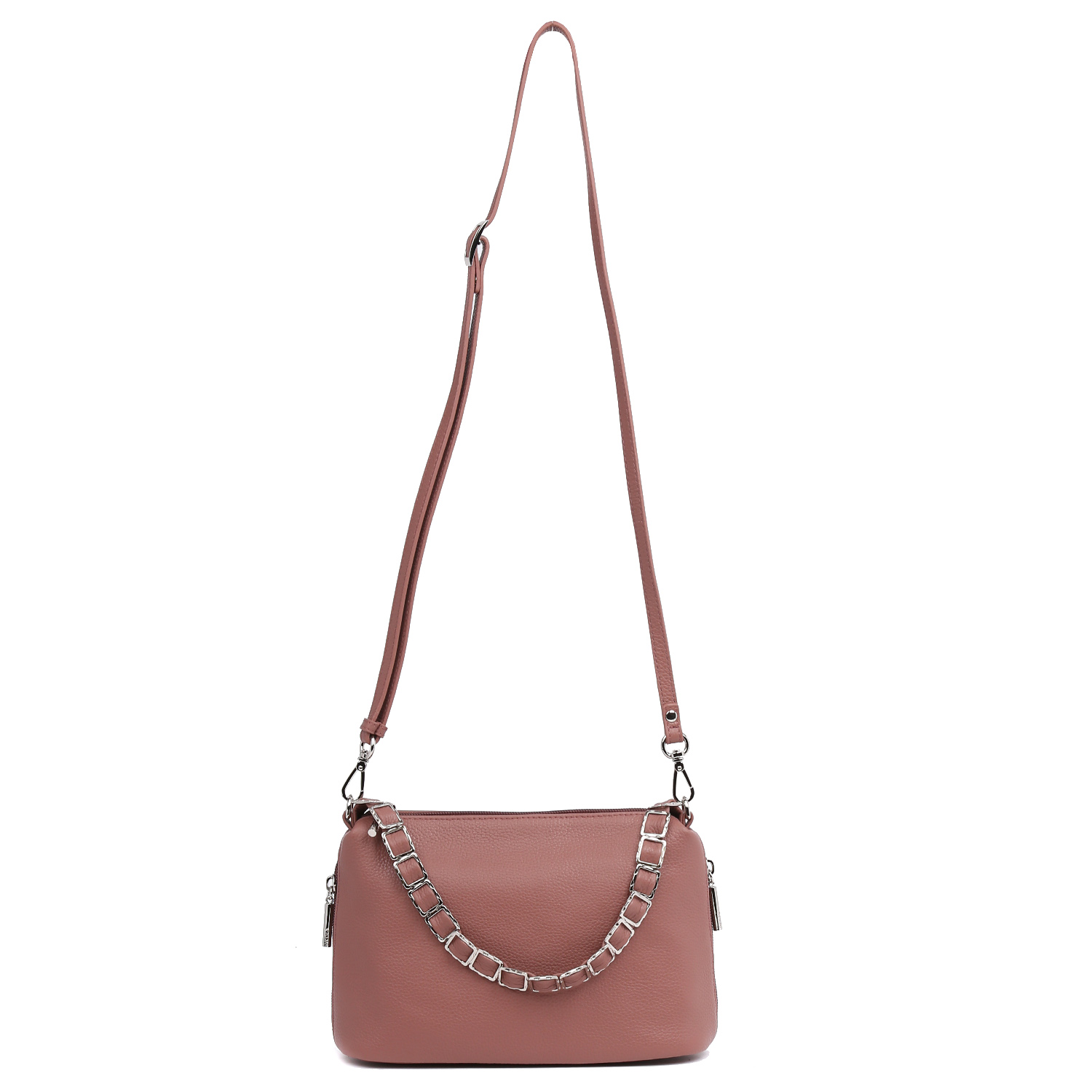 Стильная сумка через плечо от PALIO выполнена из натуральной мягкой зернистой кожи в приглушенном темно-розовом оттенке. Мягкая конструкция и декор на ручке делает данную модель практичной. Идеальный размер для прогулок. Основное отделение закрывается на молнию с удобным поводком. Внутри расположены 2 отсека, разделенные средником на молнии. В одном имеется карман на молнии, в другом - 2 открытых кармана для смартфона и мелочей. На внешних боковых стенках - удобные вертикальный кармашки быстрого доступа на молнии. Съемный плечевой ремень регулируется по длине.