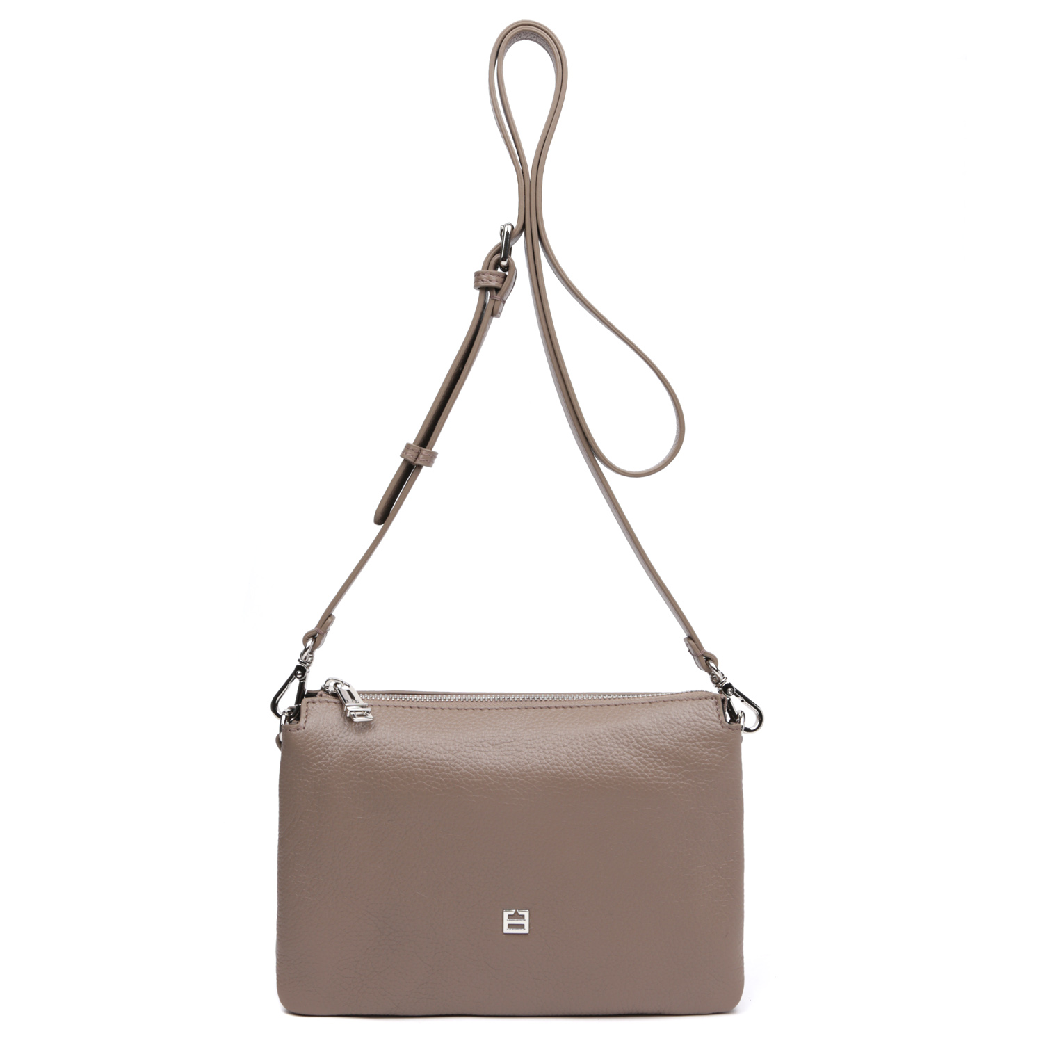 Удобная сумка кросс-боди FABRETTI выполнена из натуральной зернистой кожи в темно-бежевом оттенке. Модель отличает лаконичный дизайн и продуманная система хранения. Основное отделение закрывается на молнию. Внутри - 3 отсека, разделенных перегородками, и 2 боковых кармана - открытый и на молнии. На лицевой стороне расположена миниатюрная монограмма бренда. Плечевой ремень съемный, регулируется по длине. Цвет фурнитуры - серебро.