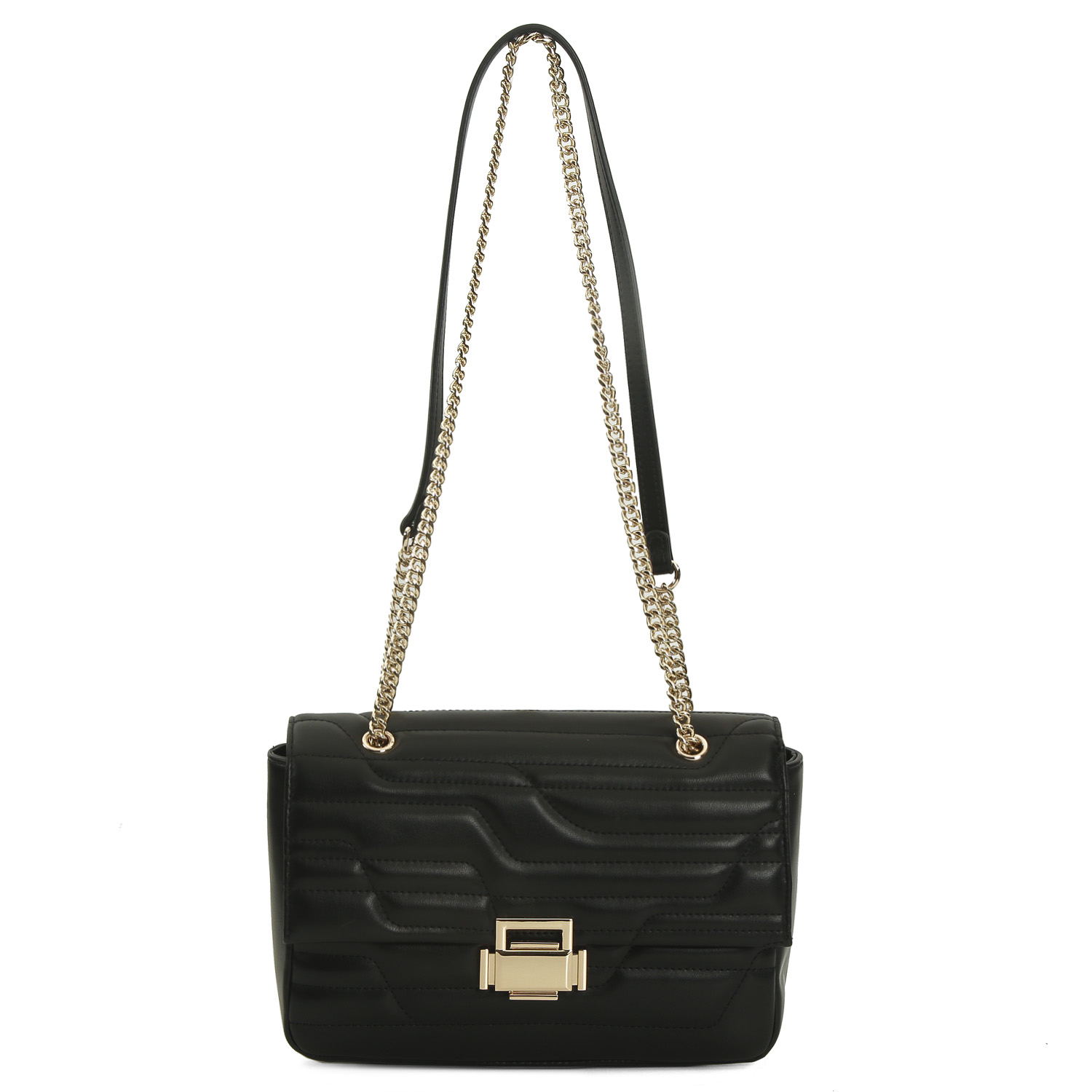 Вместительная сумка FABRETTI выполнена из мягкой стеганой кожи черного цвета. Основное отделение закрывается на клапан с механическим замком, украшением которого служит эффектная металлическая пряжка. Внутри – 2 боковых кармана: открытый и на молнии. На тыльной стороне расположен открытый карман быстрого доступа, украшенный миниатюрной монограммой бренда. Подвижная цепочка-ремень позволяет носить аксессуар как кросс-боди, а также легко превращается в две элегантные ручки. Фурнитура под золото гармонично дополняет общий дизайн изделия.