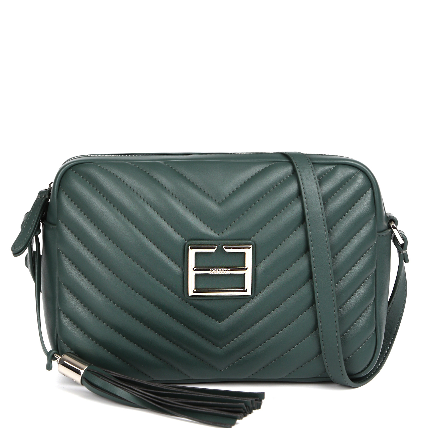 Стильная кросс-боди FABRETTI в зеленом оттенке выполнена из натуральной гладкой кожи и геометрической стёжкой. Сумка закрывается на полукруглую молнию с кожаным поводком. Внутри 2 боковых кармана для мелочей: открытый и на молнии. На тыльной стороне расположен карман быстрого доступа на молнии. Плечевой ремень регулируется по длине, ширина - 1,5 см. Цвет фурнитуры - серебро.