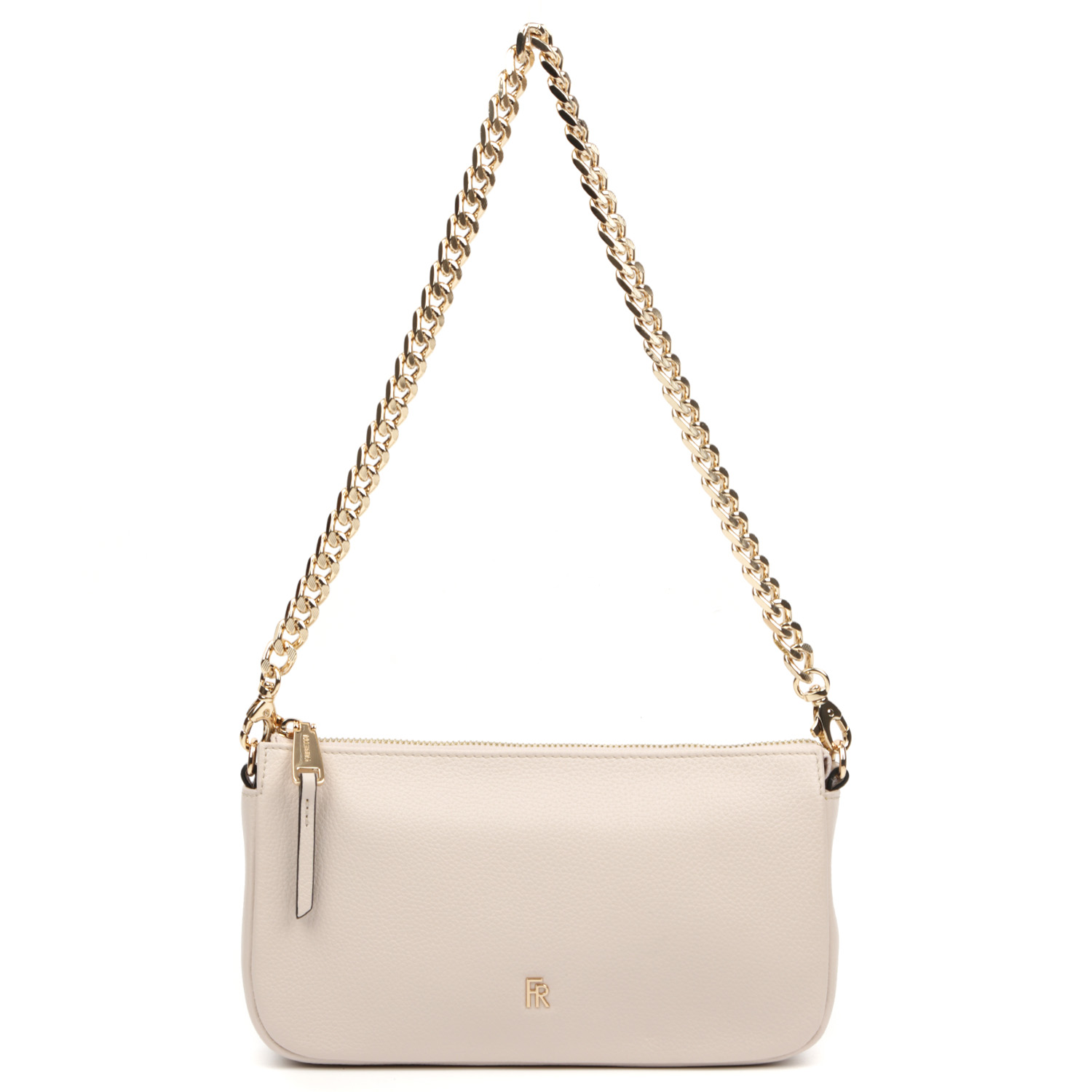 Стильная кросс-боди FABRETTI в бежевом оттенке выполнена из натуральной кожи зернистой фактуры. Основное отделение закрывается на молнию с удобным поводком. Внутри 2 кармана для мелочей: на молнии и открытый. На тыльной стороне предусмотрен карман быстрого доступа на молнии. Лицевая сторона декорирована миниатюрной монограммой бренда. В комплекте есть съемный плечевой ремень, регулирующийся по длине (ширина - 1,5 см), и съемная цепочка с крупными звеньями, позволяющая носить аксессуар в руке или на плече. Цвет фурнитуры - золото.