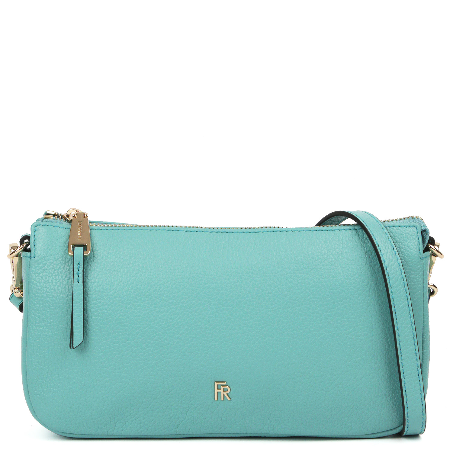Стильная кросс-боди FABRETTI в бирюзовом оттенке выполнена из натуральной кожи зернистой фактуры. Основное отделение закрывается на молнию с удобным поводком. Внутри 2 кармана для мелочей: на молнии и открытый. На тыльной стороне предусмотрен карман быстрого доступа на молнии. Лицевая сторона декорирована миниатюрной монограммой бренда. В комплекте есть съемный плечевой ремень, регулирующийся по длине (ширина - 1,5 см), и съемная цепочка с крупными звеньями, позволяющая носить аксессуар в руке или на плече. Цвет фурнитуры - золото.