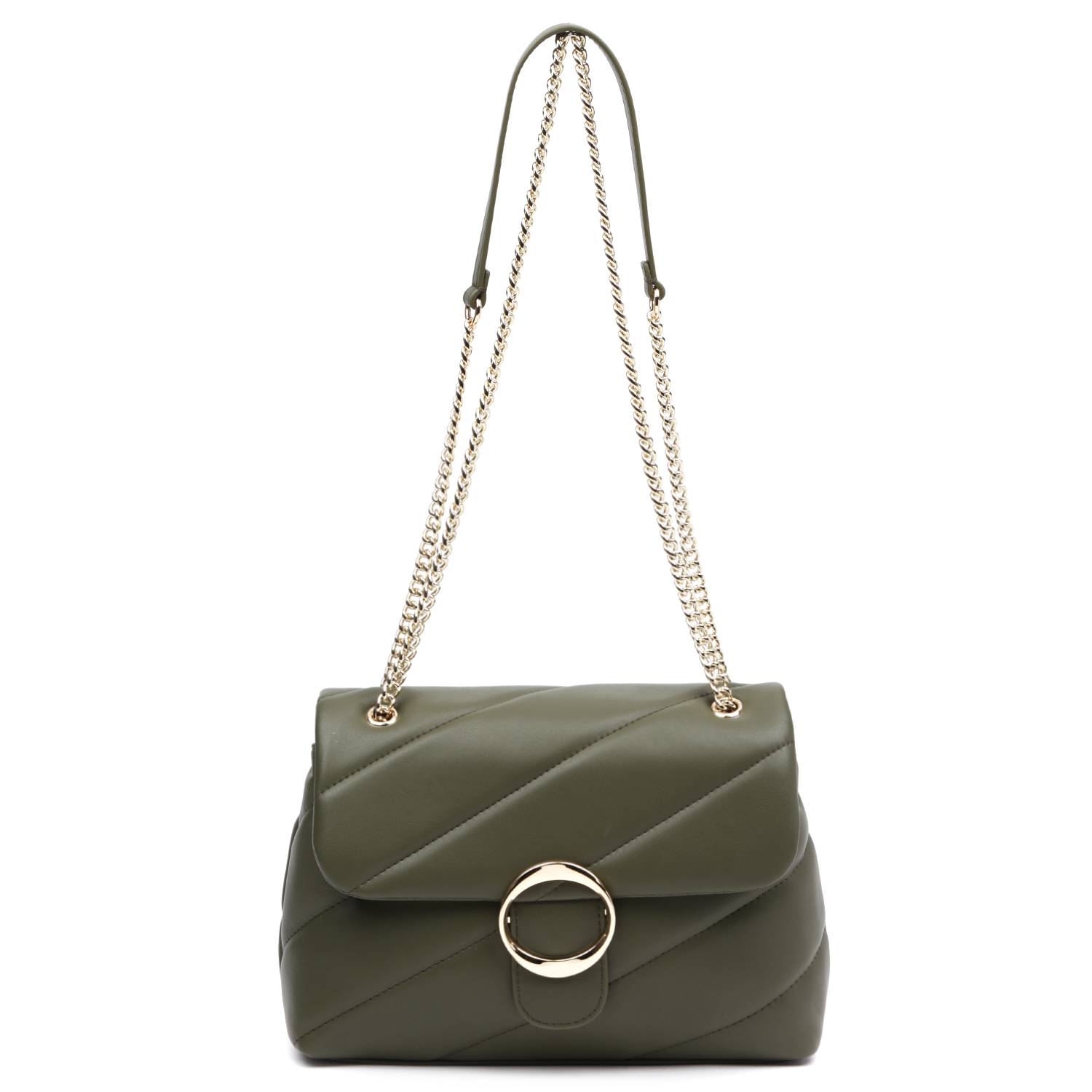 Вместительная кросс-боди FABRETTI в оливковом оттенке цвете выполнена из натуральной стёганой кожи гладкой фактуры. Сумка закрывается на клапан с магнитной кнопкой, который декорирован крупной металлической пряжкой овальной формы. Внутри 2 отделения, разделенных текстильной перегородкой. Есть 2 боковых кармана: открытый и на молнии. Ремень-цепочку можно носить двумя способами: через плечо или на плече, трансформировав в 2 ручки. Цвет фурнитуры - золото.