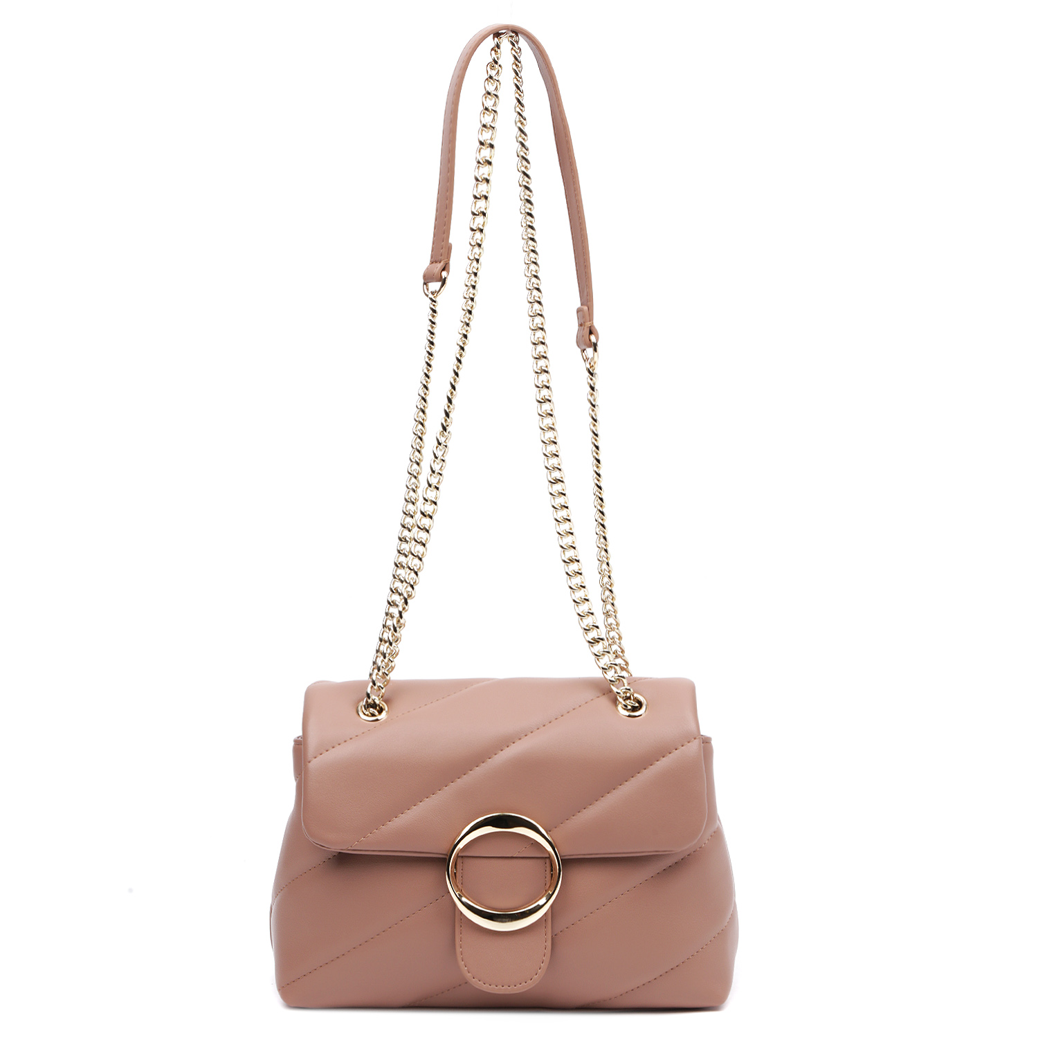 Компактная кросс-боди FABRETTI вбежево-розовом оттенке выполнена из натуральной стёганой кожи гладкой фактуры. Сумка закрывается на клапан с магнитной кнопкой, который декорирован крупной металлической пряжкой овальной формы. Внутри 2 отделения, разделенных текстильной перегородкой. Есть 2 боковых кармана: открытый и на молнии. Несъемный ремень-цепочку можно носить двумя способами: через плечо или на плече, трансформировав в 2 ручки. Цвет фурнитуры – золото.
