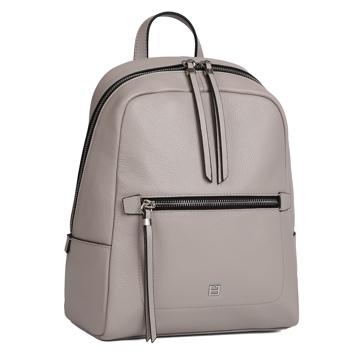 Стильный рюкзак FABRETTI выполнен из натуральной кожи зернистой фактуры в сером цвете. Основное отделение закрывается на молнию с двумя бегунками. Внутри – 2 боковых кармана для мелочей: открытый и на молнии. На лицевой стороне расположен карман на молнии с удобным кожаным поводком. В качестве декора выступает миниатюрная монограмма бренда и контрастная отделка. На тыльной стороне предусмотрен вертикальный карман быстрого доступа на молнии с кожаным поводком. Длина лямок регулируется. Фурнитура под серебро гармонично дополняет общий дизайн изделия. Модель компактна и не вмещает формат А4.