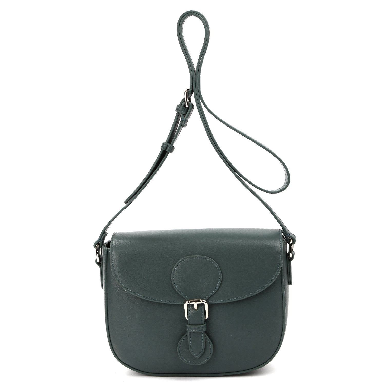 Компактная кросс-боди FABRETTI выполнена из плотной гладкой кожи в темно-бирюзовом оттенке. Модель закрывается на клапан с магнитной кнопкой. Внутри просторного отделения предусмотрены 2 боковых кармана: открытый и на молнии. На тыльной стороне расположен открытый карман быстрого доступа, декорированный миниатюрной монограммой бренда. Плечевой ремень регулируется по длине. Цвет фурнитуры - серебро.