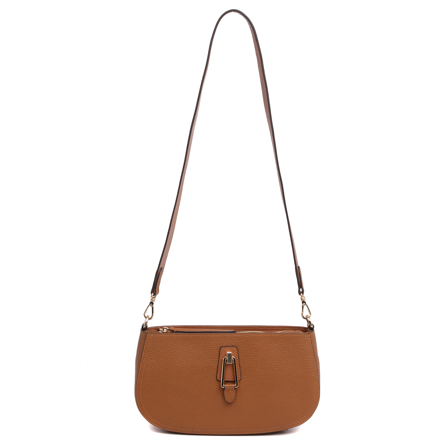 Компактная сумка на плечо PALIO выполнена из натуральной зернистой кожи в рыжем цвете. Основное отделение закрывается на молнию с удобным кожаные поводком. Внутри 2 боковых кармана: открытый и на молнии. На тыльной стороне предусмотрен вместительный карман быстрого доступа на магнитной кнопке. Лицевая сторона декорирована фурнитурой стильной геометрической формы. Плечевой ремень съемный.