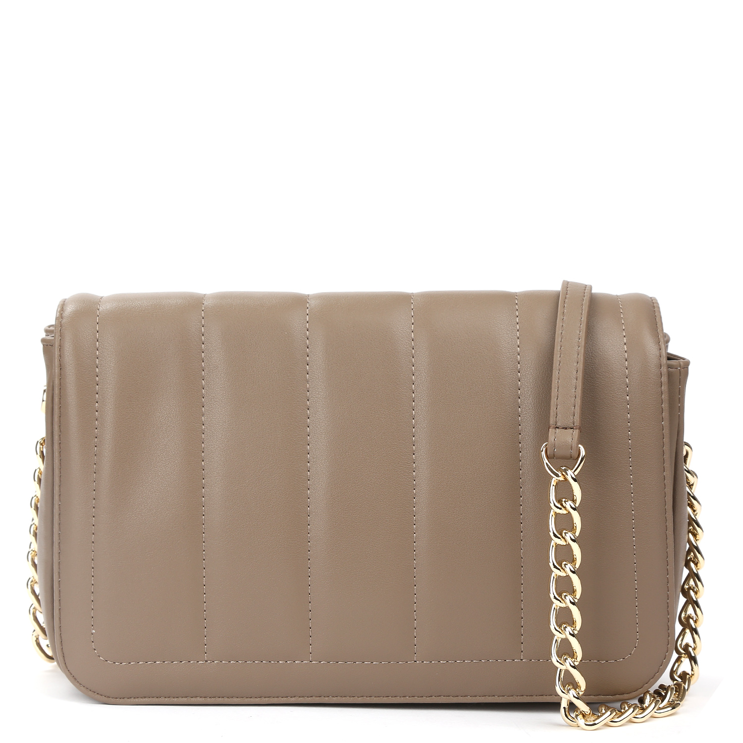 Стильная кросс-боди FABRETTI в темно-бежевом оттенке выполнена из натуральной кожи нежной фактуры и отличается лаконичным дизайном. Сумка закрывается клапаном с магнитной кнопкой. Клапан декорирован вертикальной стёжкой. Внутри 2 отдела, разделенных средником с карманом на молнии. На боковых стенках есть 2 кармана для мелочей: открытый и на молнии. На тыльной стороне предусмотрен открытый карман быстрого доступа. Плечевой ремень-цепочка дополняет лаконичный дизайн изделия. Цвет фурнитуры - золото.