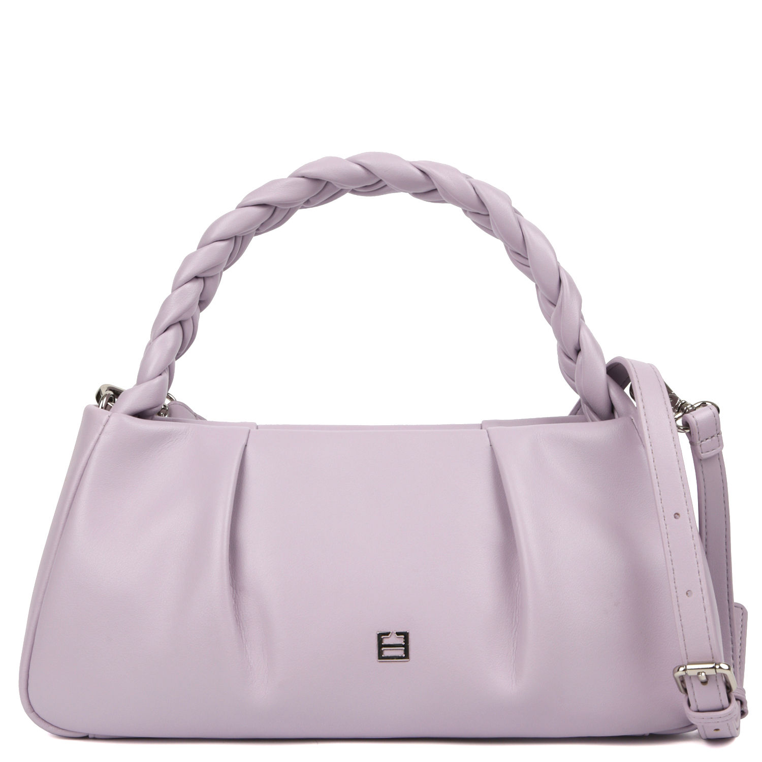 Стильная кросс-боди FABRETTI в сиреневом оттенке выполнена из натуральной кожи нежной выделки и декорирована защипами, которые придают модели объем и формируют элегантные складки. Основное отделение закрывается на молнию. Внутри 2 боковых кармана для мелочей: открытый и на молнии. Яркая деталь – объемная плетеная ручка, позволяющая носить аксессуар в руке. В комплекте идет съемный ремень (ширина - 1,5 см), который регулируется по длине. Цвет фурнитуры - серебро.