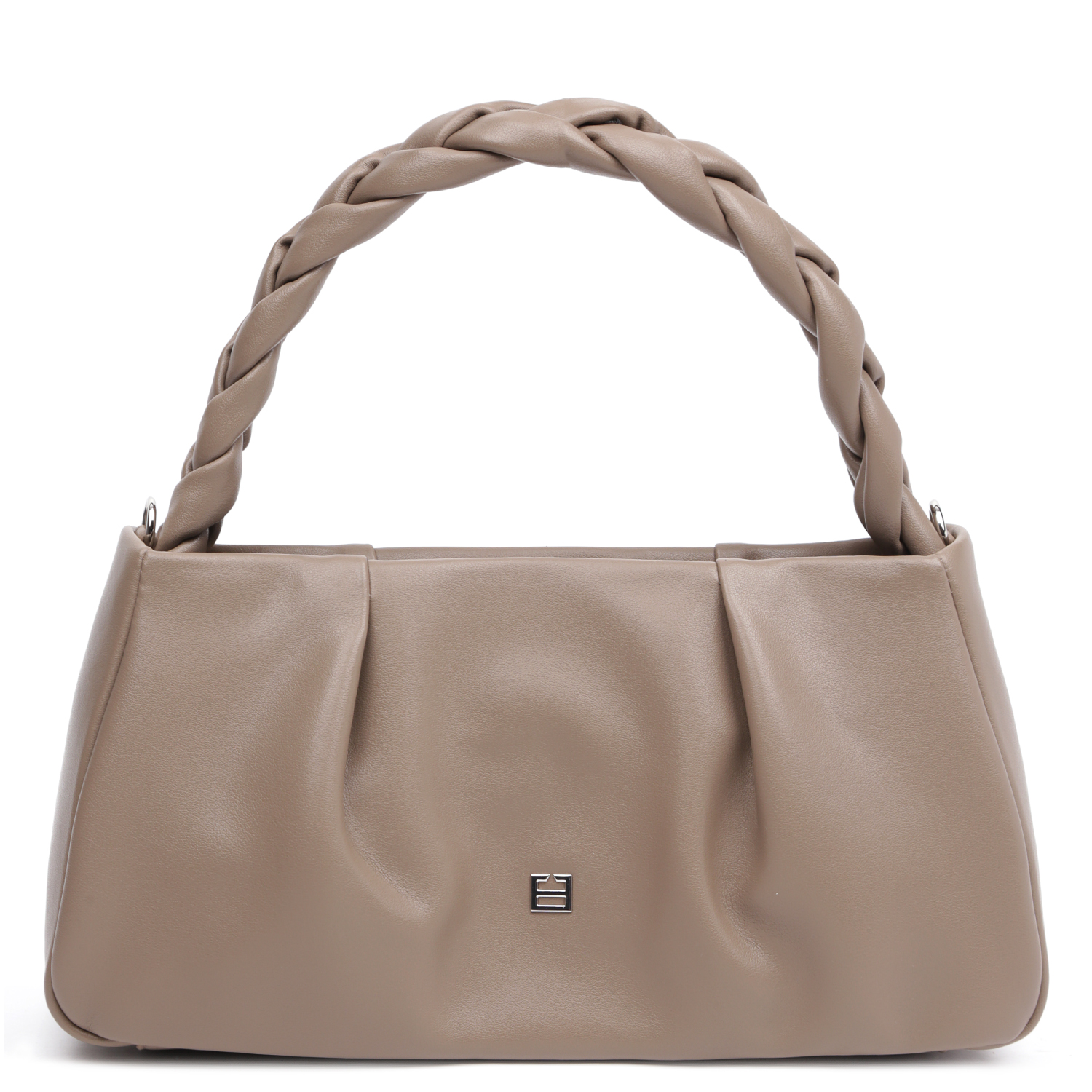 Стильная кросс-боди FABRETTI в темно-бежевом оттенке выполнена из натуральной кожи нежной выделки и декорирована защипами, которые придают модели объем и формируют элегантные складки. Основное отделение закрывается на молнию. Внутри 2 боковых кармана для мелочей: открытый и на молнии. Яркая деталь – объемная плетеная ручка, позволяющая носить аксессуар в руке. В комплекте идет съемный ремень, который регулируется по длине. Цвет фурнитуры - серебро.