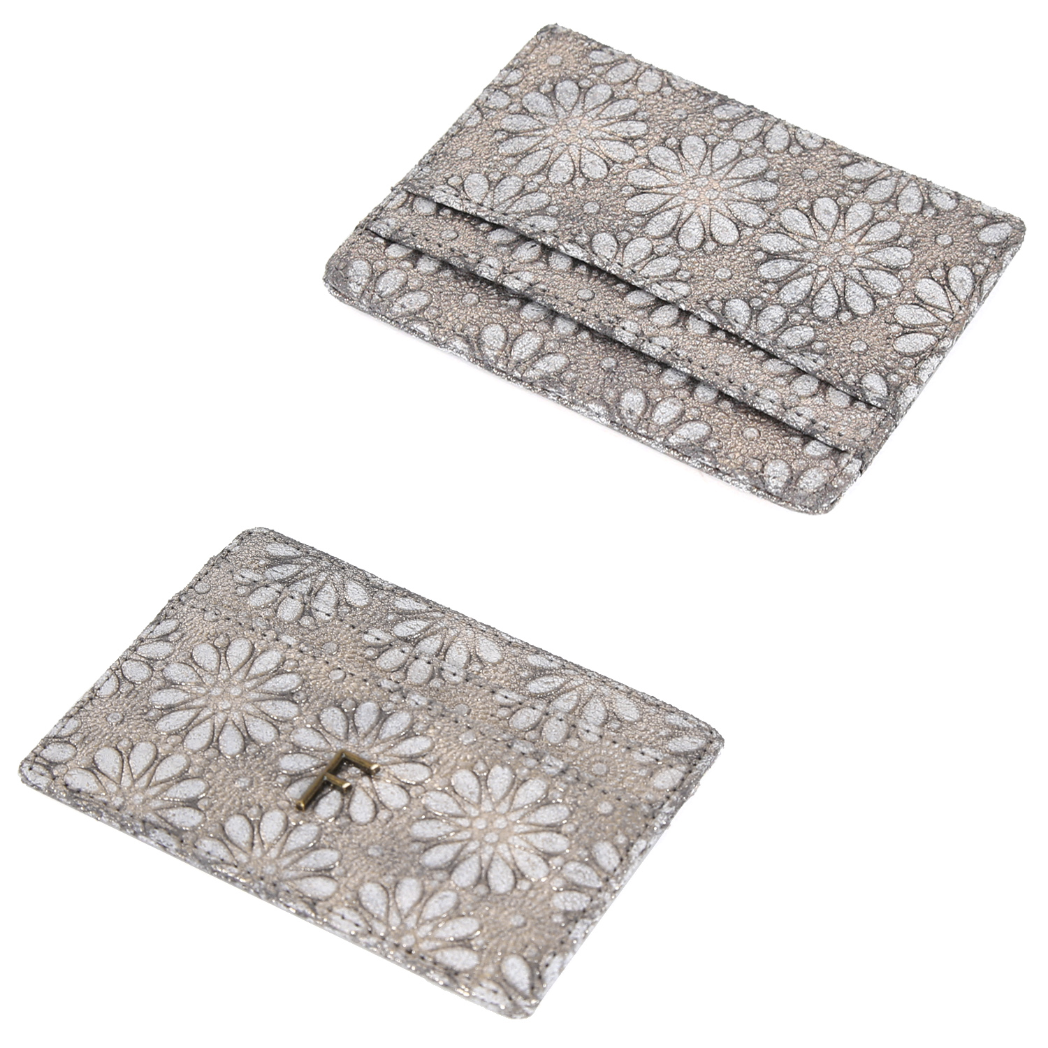 Миниатюрная плоская женская визитница FABRETTI занимает минимум места и незаменима, когда нужно взять несколько банковских карт. Модель выполнена из натуральной металлизированной кожи с эффектным фактурным тиснением. Удобно размещается в руке, приятна на ощупь.