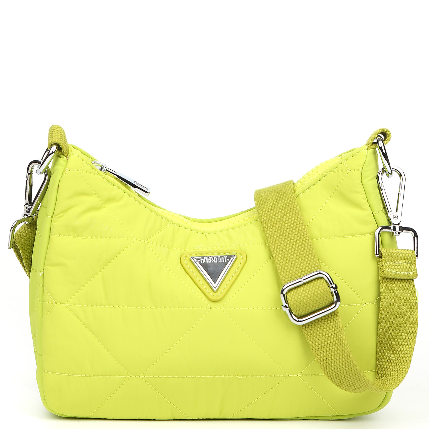 Компактная сумка через плечо FABRETTI в салатовом оттенке выполнена из высокотехнологичного влагостойкого полиэстера стеганой фактуры. Он практичен и прост в уходе. Основное отделение закрывается на молнию с металлическим поводком. Внутри 3 боковых кармана для мелочей: 2 открытых и на молнии. Съемный плечевой ремень регулируется по длине, ширина - 2,5 см. При желании его можно отстегнуть и использовать модель в качестве косметички. Сумка станет незаменимым аксессуаром в любой поездке, а также гармонично впишется в стиль casual.