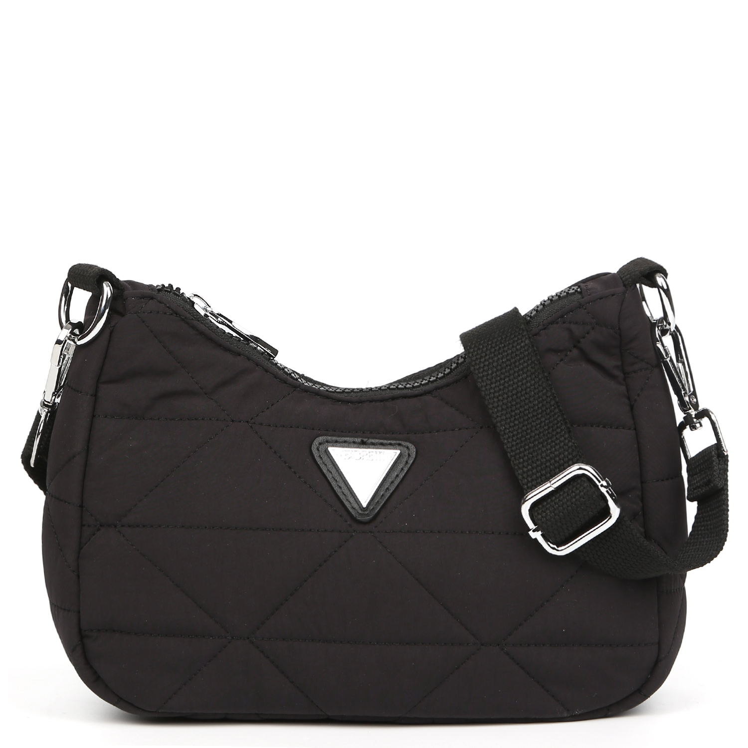 Компактная сумка через плечо FABRETTI в черном цвете выполнена из высокотехнологичного влагостойкого полиэстера стеганой фактуры. Он практичен и прост в уходе. Основное отделение закрывается на молнию с металлическим поводком. Внутри 3 боковых кармана для мелочей: 2 открытых и на молнии. Съемный плечевой ремень регулируется по длине, ширина - 2,5 см. При желании его можно отстегнуть и использовать модель в качестве косметички. Сумка станет незаменимым аксессуаром в любой поездке, а также гармонично впишется в стиль casual.