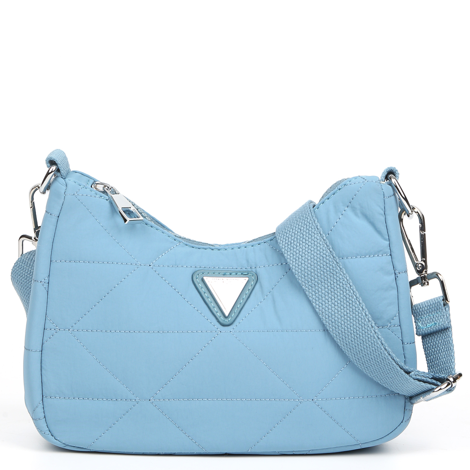 Компактная сумка через плечо FABRETTI в голубом оттенке выполнена из высокотехнологичного влагостойкого полиэстера стеганой фактуры. Он практичен и прост в уходе. Основное отделение закрывается на молнию с металлическим поводком. Внутри 3 боковых кармана для мелочей: 2 открытых и на молнии. Съемный плечевой ремень регулируется по длине, ширина - 2,5 см. При желании его можно отстегнуть и использовать модель в качестве косметички. Сумка станет незаменимым аксессуаром в любой поездке, а также гармонично впишется в стиль casual.
