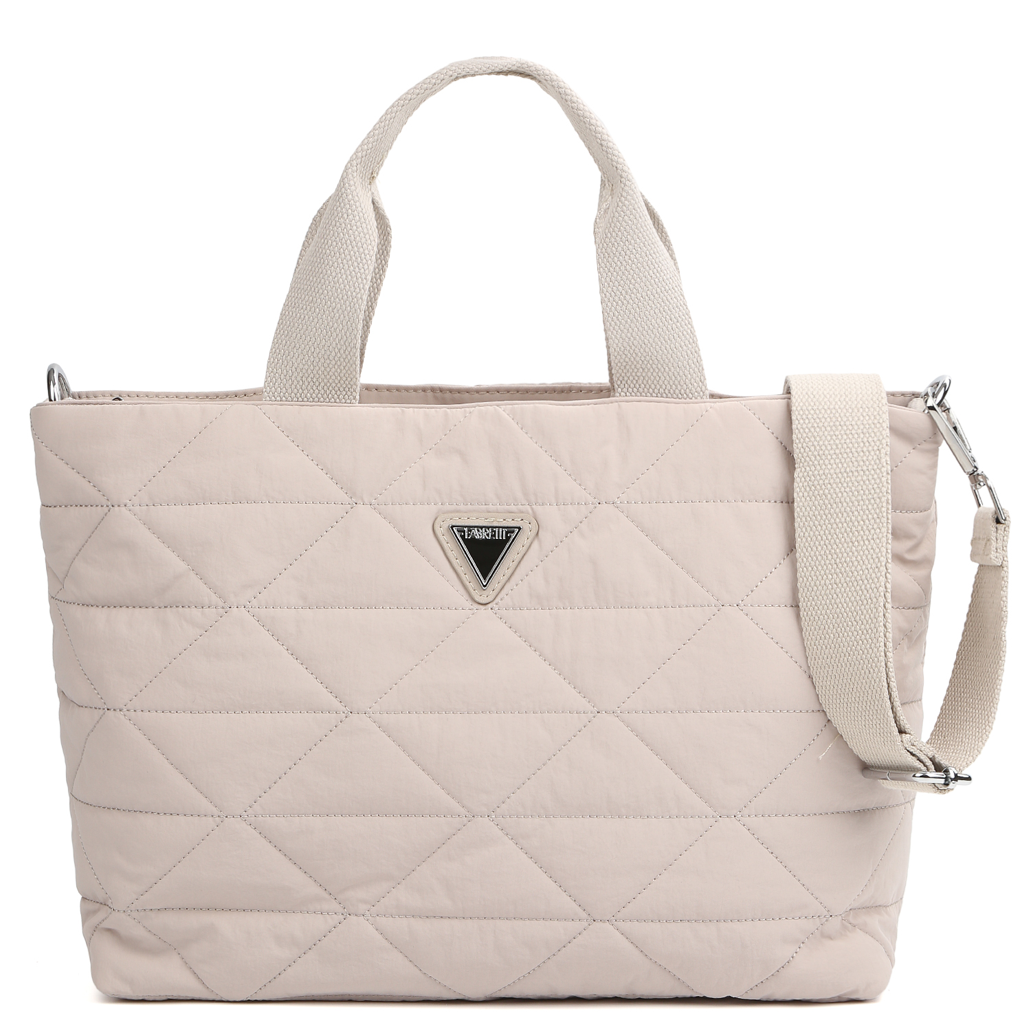 Вместительная текстильная сумка FABRETTI в бежевом оттенке выполнена из высокотехнологичного влагостойкого полиэстера стеганой фактуры. Он практичен и прост в уходе. Основное отделение закрывается на молнию с металлическим поводком. Внутри 3 боковых кармана для мелочей: 2 открытых и на молнии. Две удобные ручки позволяют носить аксессуар в руке. Съемный плечевой ремень регулируется по длине, ширина - 4 см. При желании его можно отстегнуть или заменить на другой. Сумка станет незаменимым аксессуаром в любой поездке, а также гармонично впишется в стиль casual. Модель вмещает формат А4.