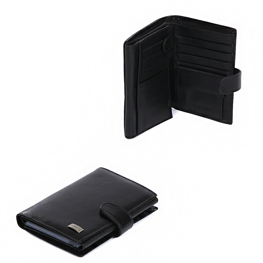 Классический мужской кошелек от итальянского бренда FABRETTI выполнен из натуральной гладкой кожи с невероятно мягкой фактурой. Насыщенный черный оттенок, фурнитура под серебро и лаконичный дизайн превращают модель в элегантный аксессуар, который подчеркнет вашу статусность и утонченный вкус. Внутри изделия находятся два отделения для купюр, также Вы сможете носить свой паспорт и документы с помощью удобного отсека. Кошелек очень вместителен: вы с легкостью расположите все ваши дисконтные и кредитные карты с помощью 12 отделений и сможете хранить денежные монеты с помощью кармана на кнопке.