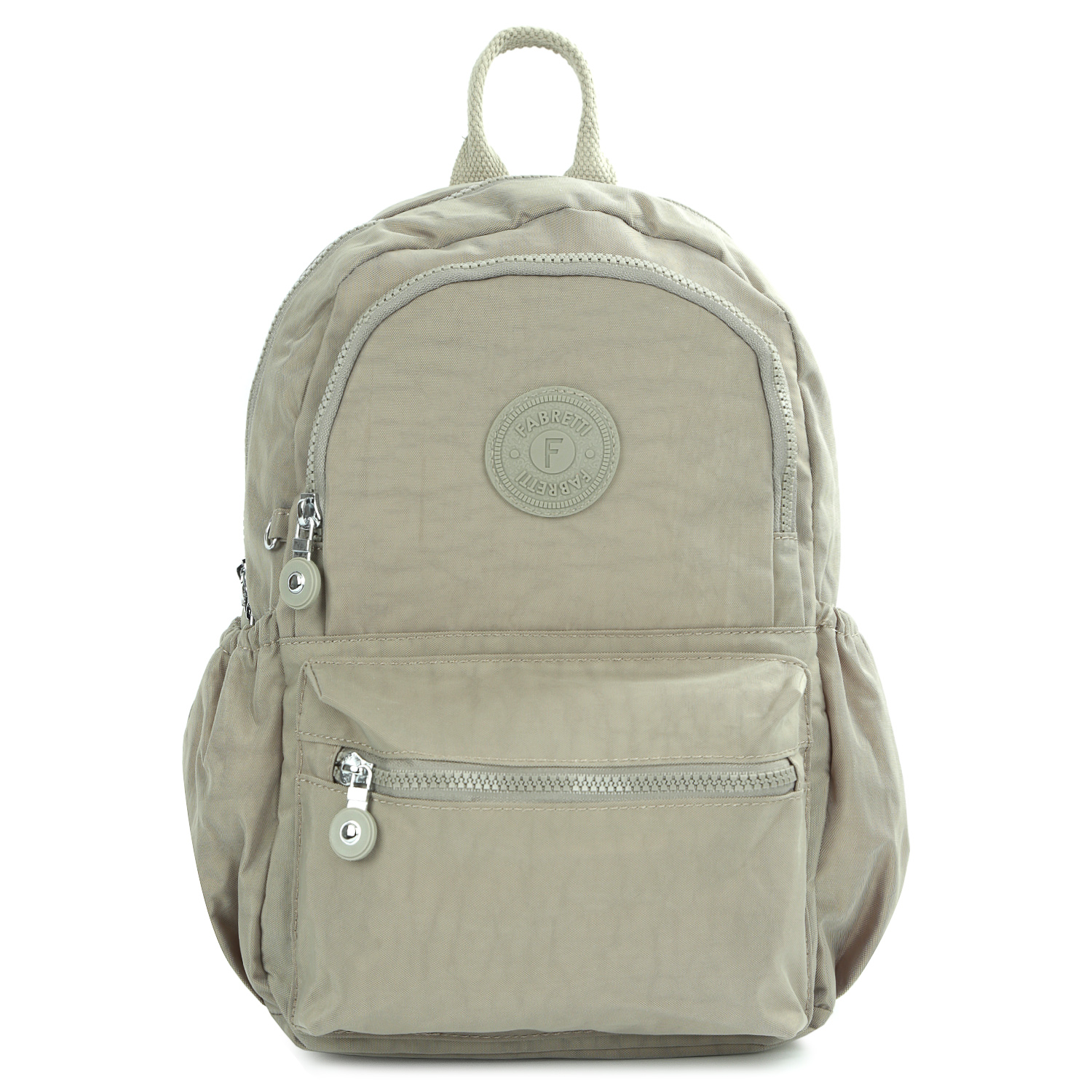 Текстильный рюкзак FABRETTI в бежевом оттенке выполнен из высокотехнологичного влагостойкого полиэстера легкой жатой фактуры. Он практичен и прост в уходе. Модель имеет продуманную систему хранения. Основное отделение закрывается на молнию с удобным поводком. Внутри 4 боковых кармана разных размеров и органайзер для ручки. На лицевой стороне находятся 2 кармана на молнии. По бокам есть 2 открытых кармана с фиксирующими резинками. На тыльной стороне предусмотрен вертикальный карман быстрого доступа на молнии. Две текстильные лямки (ширина - 3 см) регулируются по длине и соединяются в одну с помощью молнии. Система крепления лямок позволяет носить аксессуар несколькими способами: традиционно на спине, на одном плече или в качестве слинга. Сверху предусмотрена небольшая ручка, за которую можно носить аксессуар в руке.