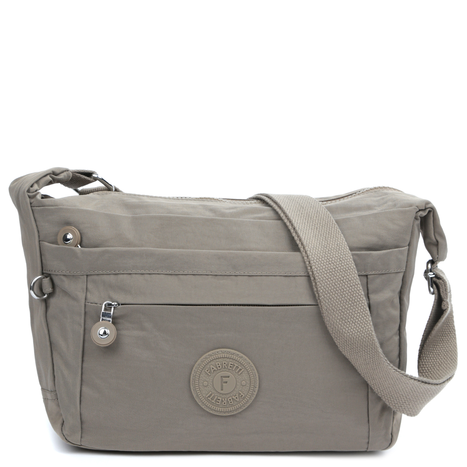 Удобная стильная сумка FABRETTI в бежевом оттенке выполнена из высокотехнологичного влагостойкого полиэстера. Он практичен и прост в уходе. Основное отделение закрывается на молнию с удобным поводком. Внутри есть 3 боковых кармана для мелочей: 2 открытых и на молнии. Карабин на шнурке поможет быстро найти ключи в сумке. На лицевой стороне расположены 2 вместительных кармана на молнии. На тыльной стороне предусмотрен глубокий карман быстрого доступа на молнии. Текстильный плечевой ремень регулируется по длине. Сумка станет незаменимым аксессуаром в любой поездке, а также гармонично впишется в стиль casual.