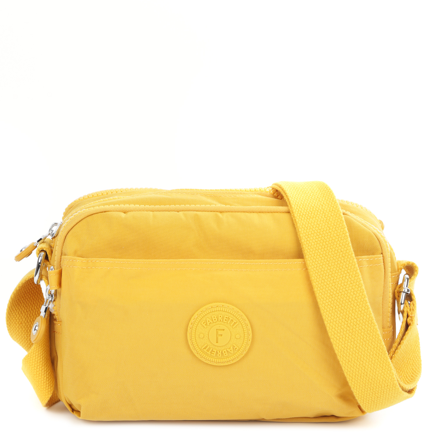 Компактная текстильная кросс-боди FABRETTI в желтом оттенке выполнена из высокотехнологичного влагостойкого полиэстера легкой жатой фактуры. Он практичен и прост в уходе. Модель имеет продуманную систему хранения. Каждое из 3 отделений закрывается на полукруглую молнию с удобным поводком. Внутри предусмотрены боковые карманы быстрого доступа и карабин на шнурке, который поможет быстро найти ключи в сумке. На лицевой и тыльной сторонах расположены 2 вместительных кармана на молнии. Текстильный плечевой ремень регулируется по длине, ширина - 3 см. Сумка станет незаменимым аксессуаром в любой поездке, а также гармонично впишется в спортивный и casual стиль.