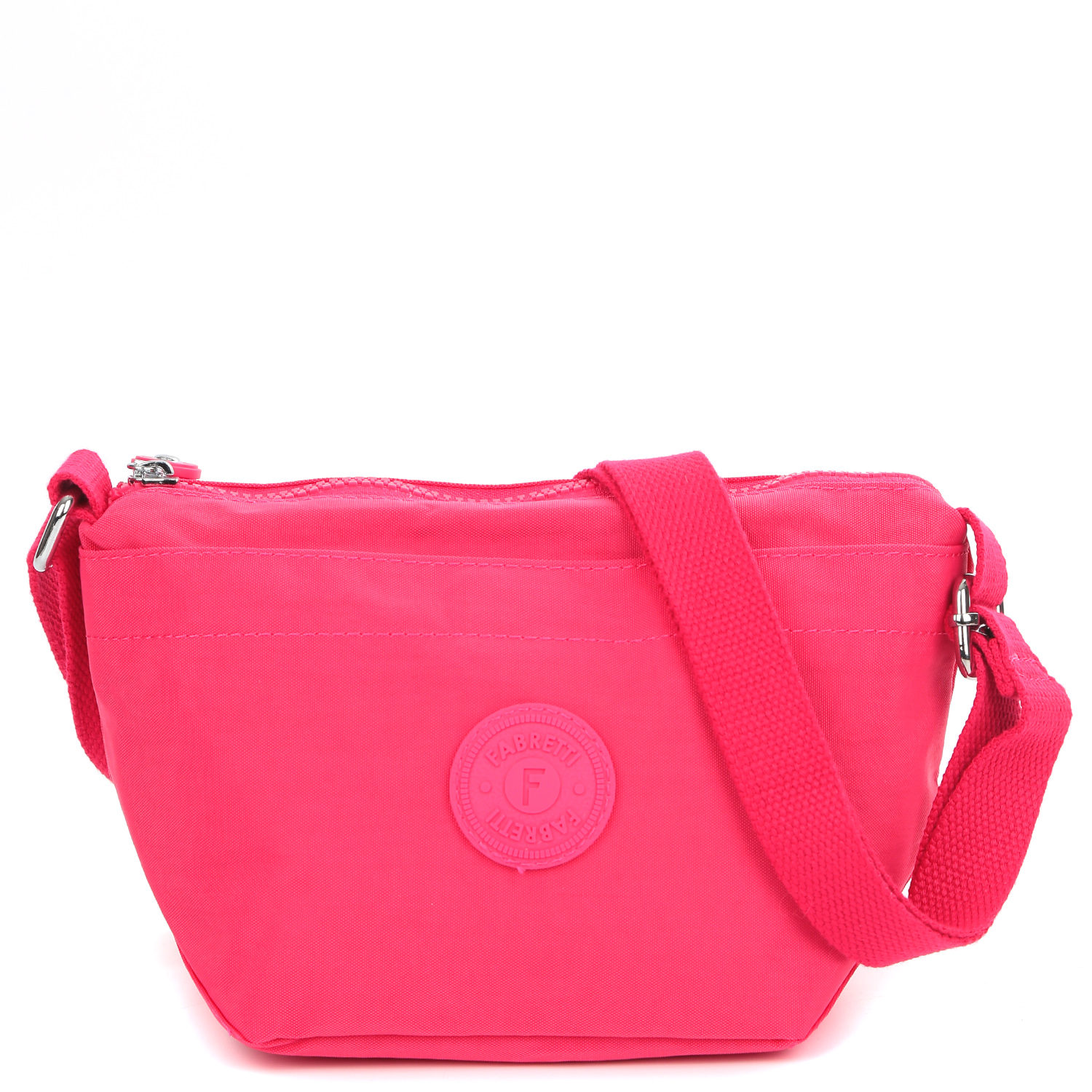 Компактная сумка кросс-боди FABRETTI в оттенке фуксии выполнена из высокотехнологичного влагостойкого полиэстера легкой жатой фактуры. Он практичен и прост в уходе. Основное отделение закрывается на молнию с удобным поводком. Внутри есть боковой карман на молнии. На лицевой стороне расположен глубокий карман на липучке. На тыльной стороне предусмотрен карман быстрого доступа на молнии. Текстильный плечевой ремень регулируется по длине, ширина - 2,5 см.