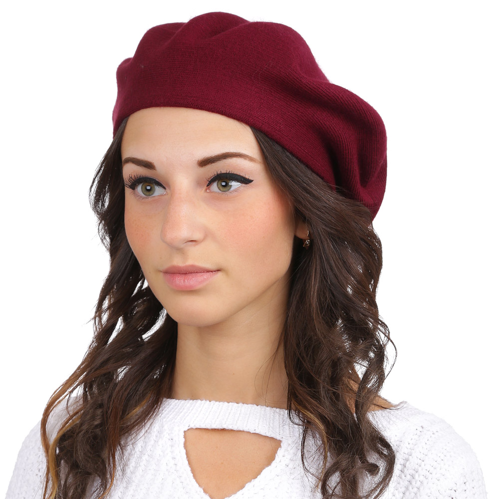 Берет, 30% кашемир, 30% шерсть, 10% ангора, 10% вискоза, 20% полиамид, FABRETTI S2017-1-bordo