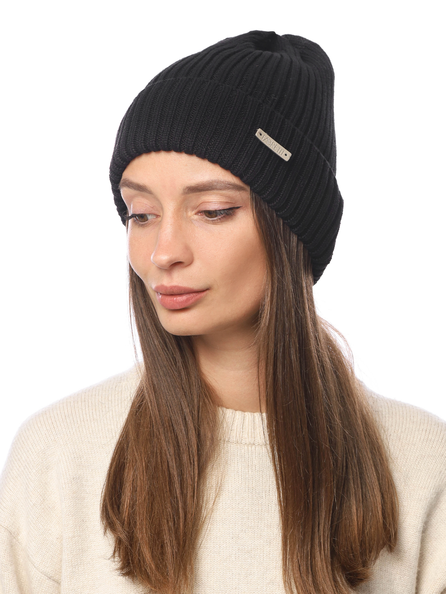 Женская шапка FABRETTI с отворотом в чёрном оттенке выполнена из пряжи с преобладанием хлопка, полиэстера и эластана. Эластичная и приятная на ощупь фактура создаёт комфорт при носке, а универсальный чёрный цвет позволяет легко сочетать модель с верхней одеждой любого стиля и оттенка.