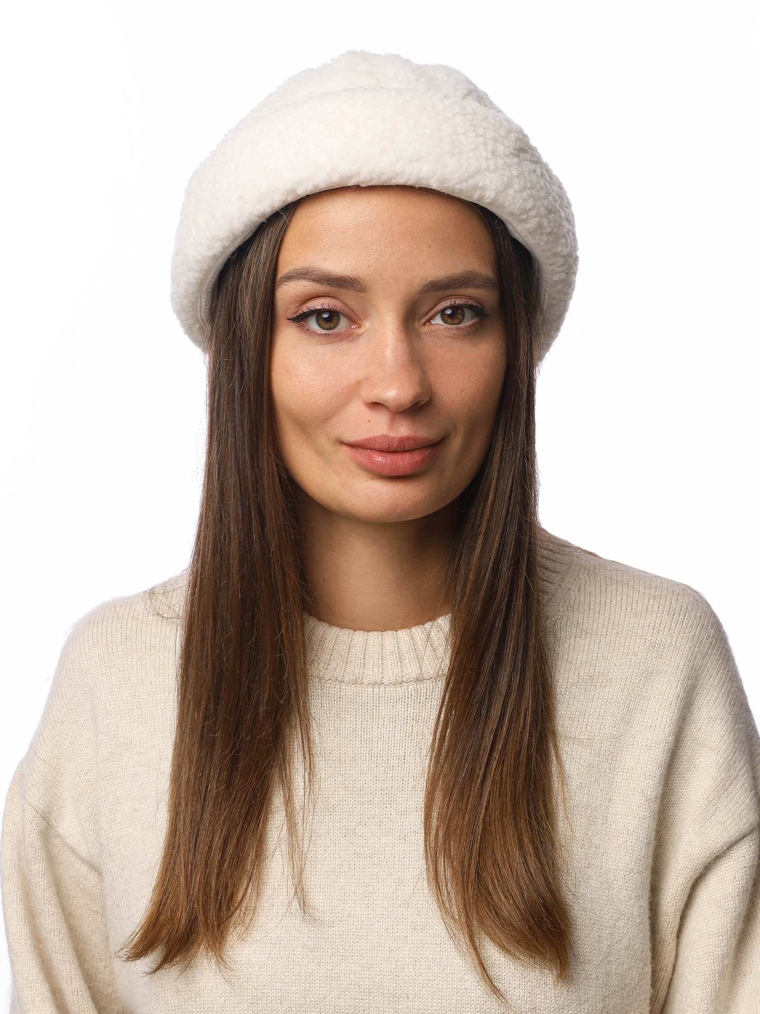 Шапка отлично подходит для прохладного сезона: высококачественный экомех, имитирующий овечью шерсть, прекрасно удерживает тепло, но не нарушает воздухообмен. Внутренняя отделка выполнена из полиэстера.