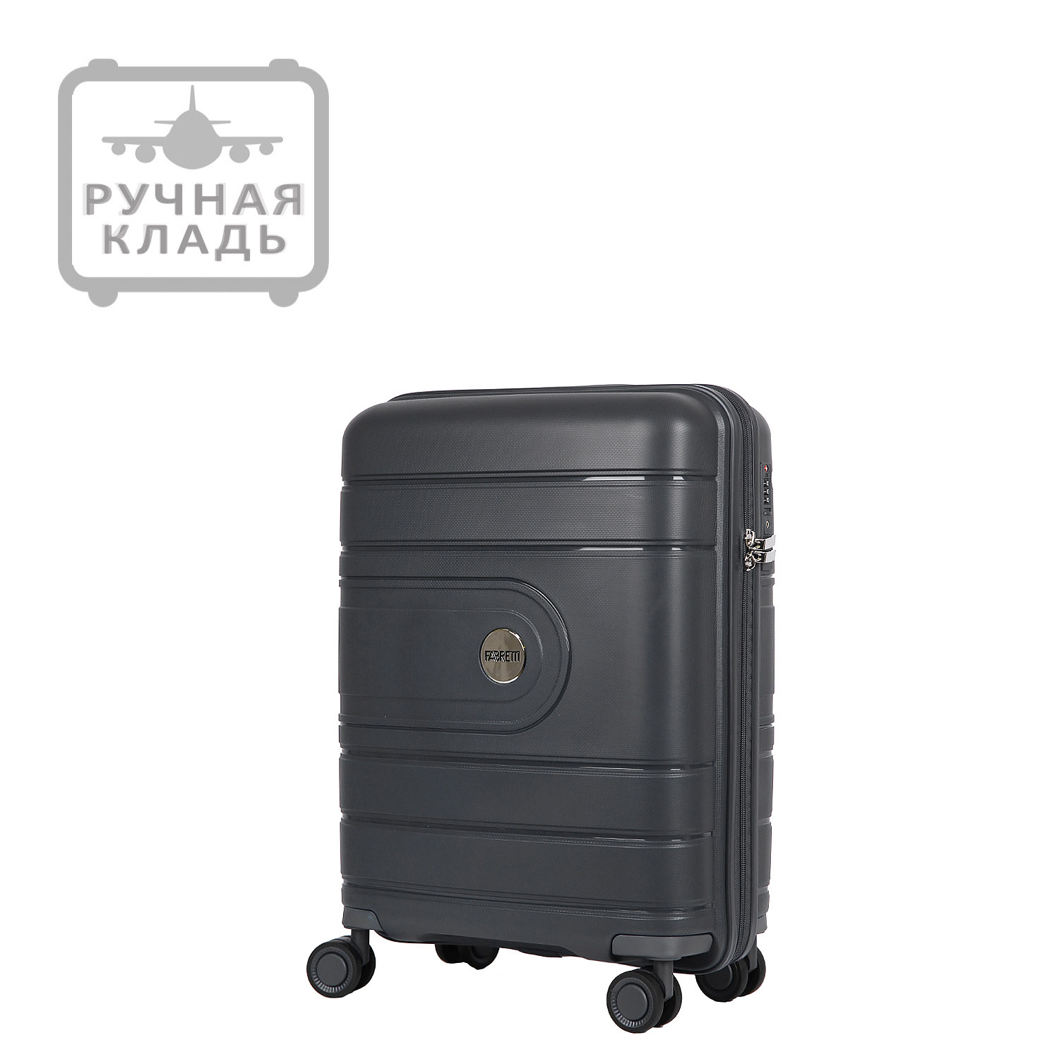 Компактный чемодан FABRETTI серого цвета выполнен из полипропилена – материала, для которого характерны высокая ударопрочность, стойкость к перепадам температур, отличная износостойкость. Внутри находятся два отделения, разделенные тканевой перегородкой, а также фиксаторы для одежды. Подходит для ручной клади в большинстве авиакомпаний.