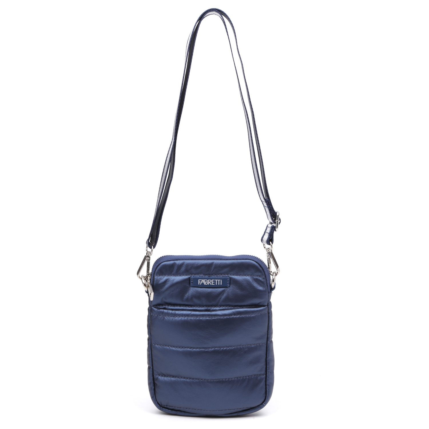 Компактная стеганая кросс-боди FABRETTI выполнена из экокожи в темно-сине оттенке. Высокотехнологичный материал на полиуретановой основе обладает водоотталкивающими свойствами, устойчив к температурным перепадам до -25 C, приятен на ощупь. Основное отделение закрывается на полукруглую молнию. На лицевой стороне расположен карман быстрого доступа на магнитной кнопке. Съемный широкий ремень из текстиля гармонично дополняет дизайн изделия. Цвет фурнитуры - серебро.