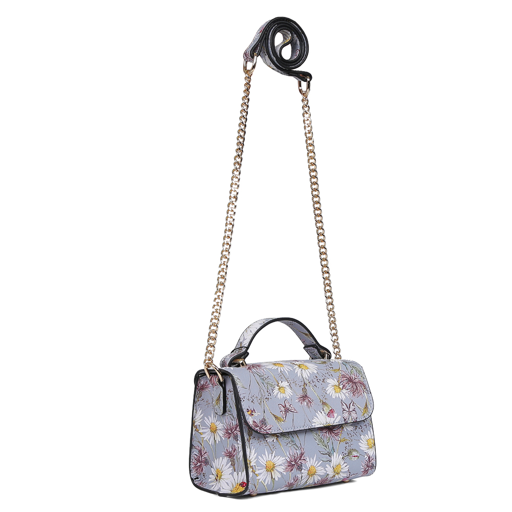 Стильный серый оттенок в сочетании с дизайнерским и невероятно женственным цветочным принтом – эта женская сумка из новой коллекции Fabretti создана, чтобы стать верным "спутником" этого модного сезона, ведь лучшего варианта для вечерних выходов и встреч с друзьями просто не найти! Высококачественная экокожа, лаконичная форма плечевой ремень в виде цепочки - такой аксессуар добавит утонченности даже самому простому образу. Модель имеет одно внутреннее отделение, которое закрывается на прочный магнитный замок. Внутри дизайнеры разместили карман для различных женских мелочей. Модель компактна и не вмещает размер А4.