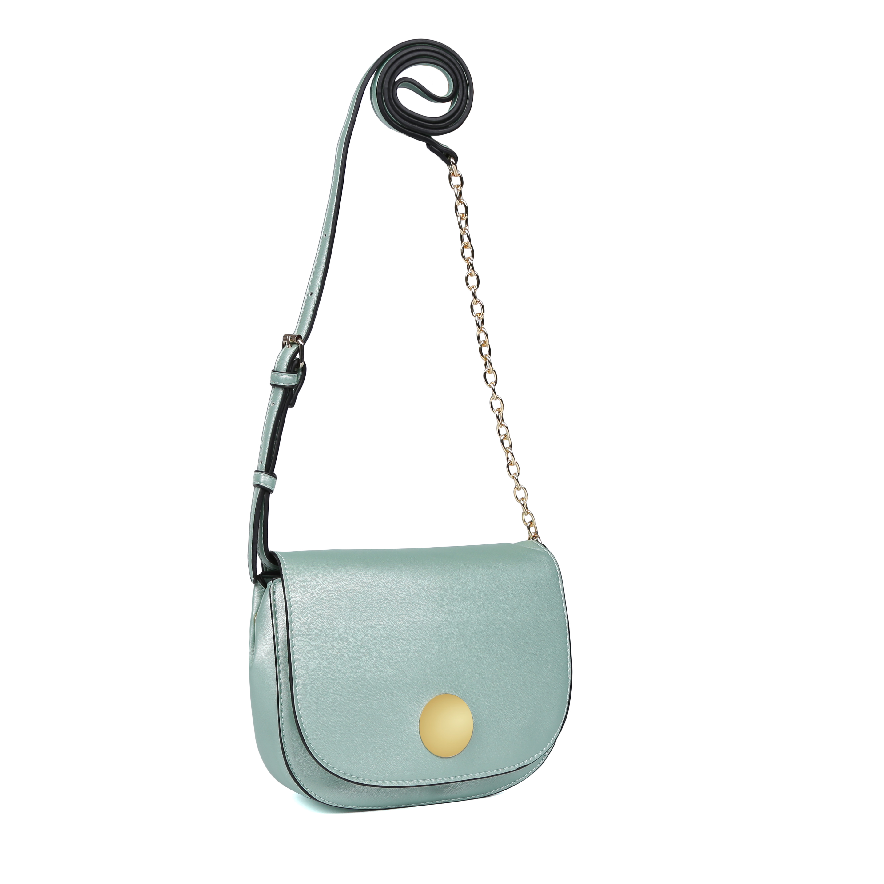 В нынешнем сезоне модели, выполненные в мятных и ментоловых оттенках, можно, без сомнения, отнести к базовым аксессуарам, которые добавят нотки женственности и романтичности любому образу. Женская сумка кросс-боди из новой линии Fabretti Silver, выполненная из экокожи, демонстрирует все основные тенденции высокой итальянской моды. Лаконичная закругленная форма и фурнитура под золото превращают модель в универсальный и эффектный аксессуар, который прекрасно дополнит как вечерний наряд, так и повседневный образ. Сумка имеет одно вместительное отделение, которое закрывается на прочный клапан. Внутри сумки вы с легкостью сможете расположить свой сотовый телефон и другие женские мелочи с помощью удобного кармана на молнии. Модель не вмещает формат A4, длинна плечевого ремня с легкостью регулируется.