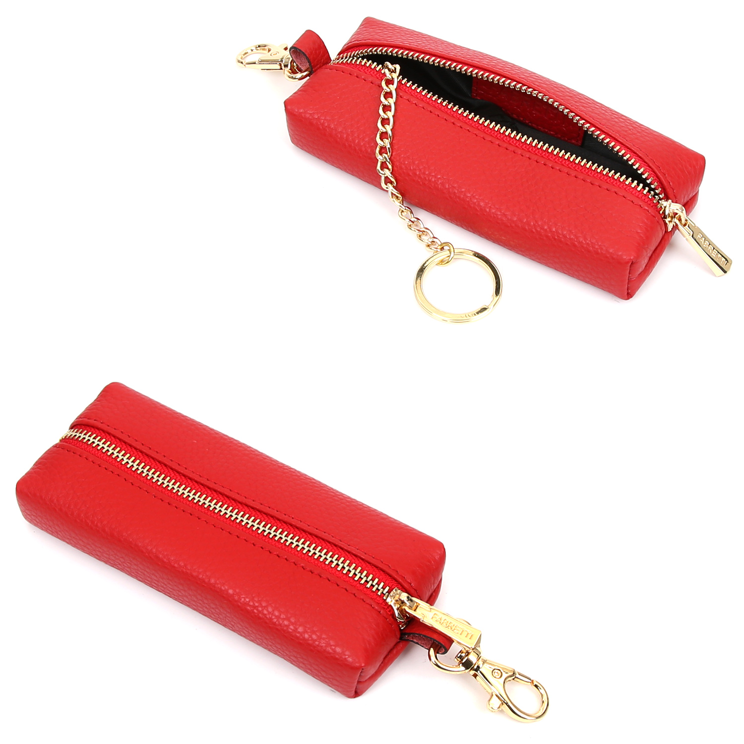Удобная компактная ключница FABRETTIвыполнена из натуральной гладкой кожи с приятной на ощупь фактурой. Лаконичный дизайн, активный красный цвет и фурнитура под золото превращают модель в изысканный аксессуар, который защитит ваши вещи от сколов и подчеркнет статус.