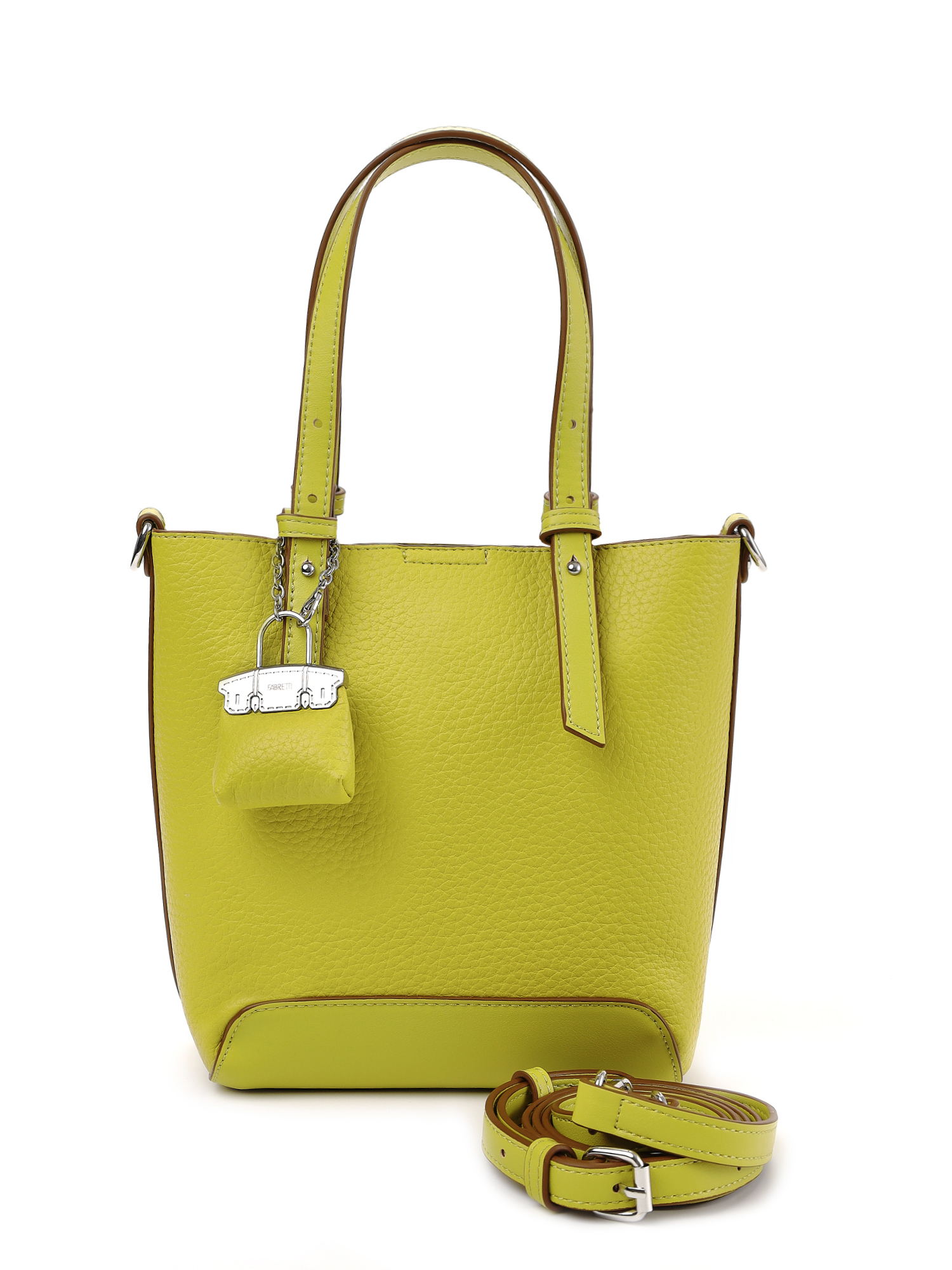 Необычная женская сумка кросс-боди итальянского бренда FABRETTI интересно комбинирует материалы – основа сумки выполнена из нежной зернистой экокожи, отделка - из более плотной и прочной гладкой. Сумка выполнена в ярком желто-зеленом оттенке, который отлично сочетается с легким летним гардеробом.