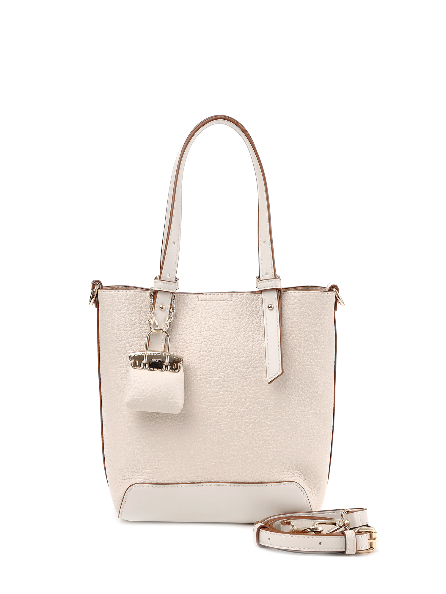 Необычная женская сумка кросс-боди итальянского бренда FABRETTI интересно комбинирует материалы – основа сумки выполнена из нежной зернистой экокожи, отделка - из более плотной и прочной гладкой. Сумка выполнена в теплом светло-бежевом оттенке, который отлично сочетается с летним гардеробом в натуральных тонах.