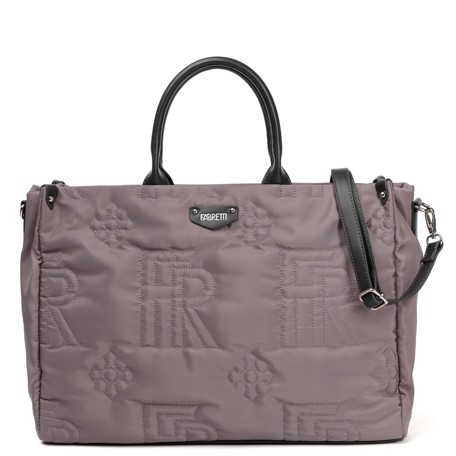 Стильная стёганая сумка FABRETTI в сером оттенке выполнена из высокотехнологичного полиэстера, устойчивого к воздействию влаги и перепаду температур. В качестве декора выбрана стёжка с монограммами бренда. Ручки, плечевой ремень, дно и детали отделки – из экокожи. Основное отделение на молнии. Внутри 3 кармана для мелочей: 2 открытых и на молнии. На тыльной стороне предусмотрен карман быстрого доступа на молнии. Две ручки позволяют носить аксессуар в руке. В комплекте - съемный плечевой ремень, регулируемый по длине, ширина - 2 см. Вмещает формат А4. Цвет фурнитуры - золото.
