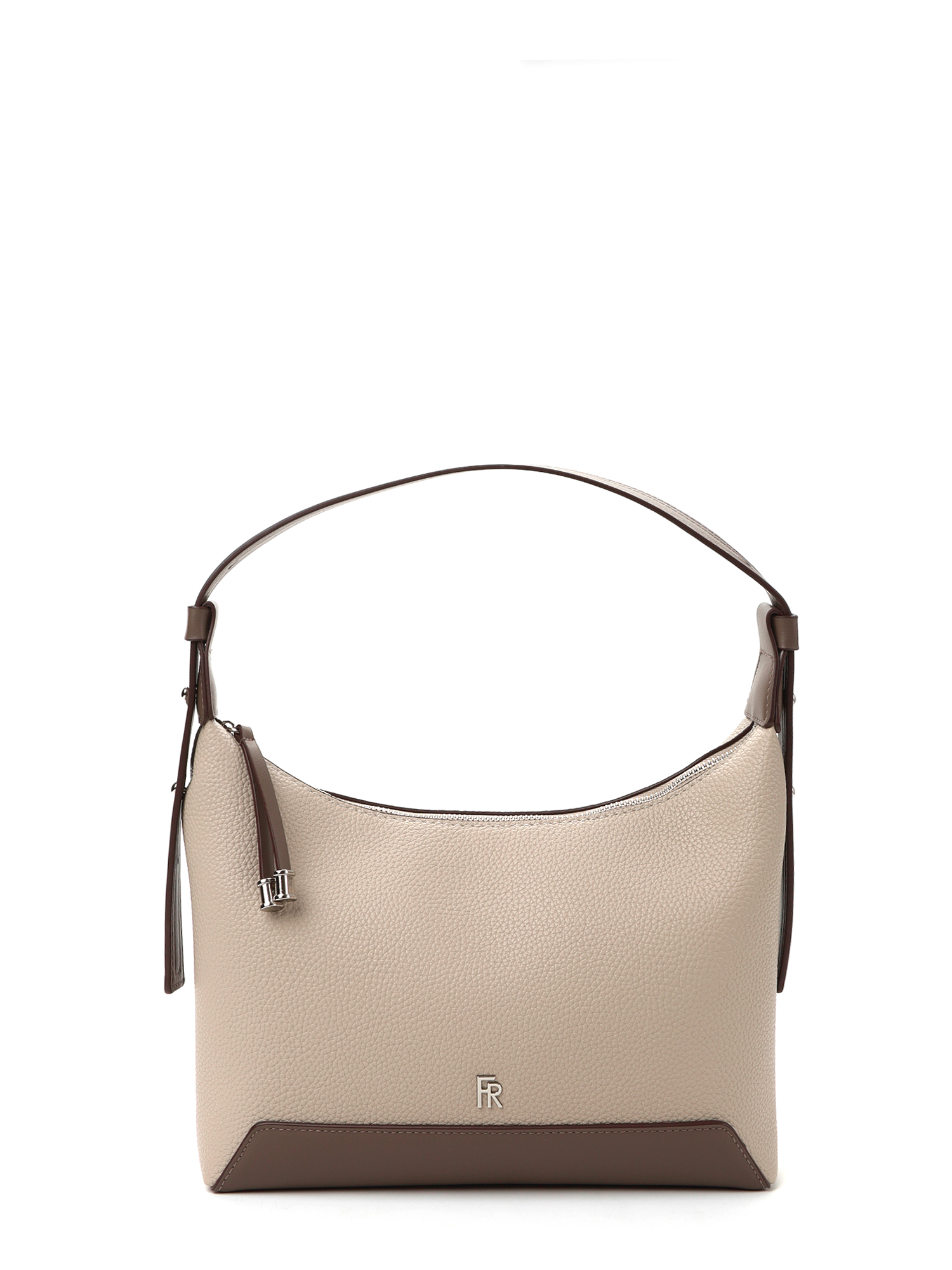 Удобная городская женская сумка хобо итальянского бренда FABRETTI выполнена из высококачественной экокожи с крупнозернистой фактурой. Серо-бежевая рельефная кожа дополнена отделкой из гладкой экокожи более темного серого оттенка «тауб». Это сочетание отлично гармонирует с повседневной одеждой на любой сезон. Сумка вмещает все необходимое, но не выглядит объемной. Ручка регулируется по высоте.