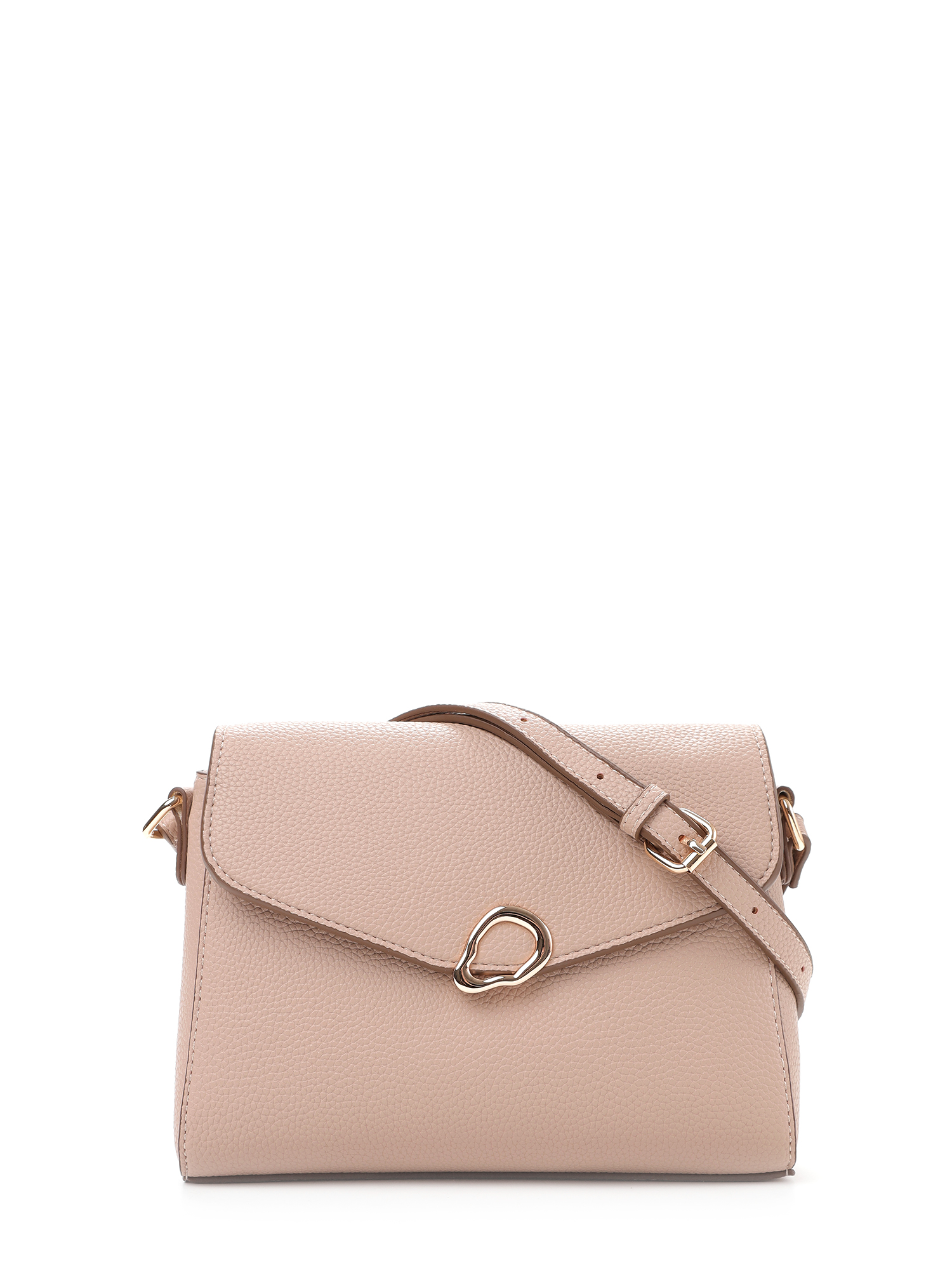 Классическая женская сумка кросс-боди с клапаном итальянского бренда FABRETTI из высококачественной зернистой экокожи розового-бежевого, «нюдового» оттенка.