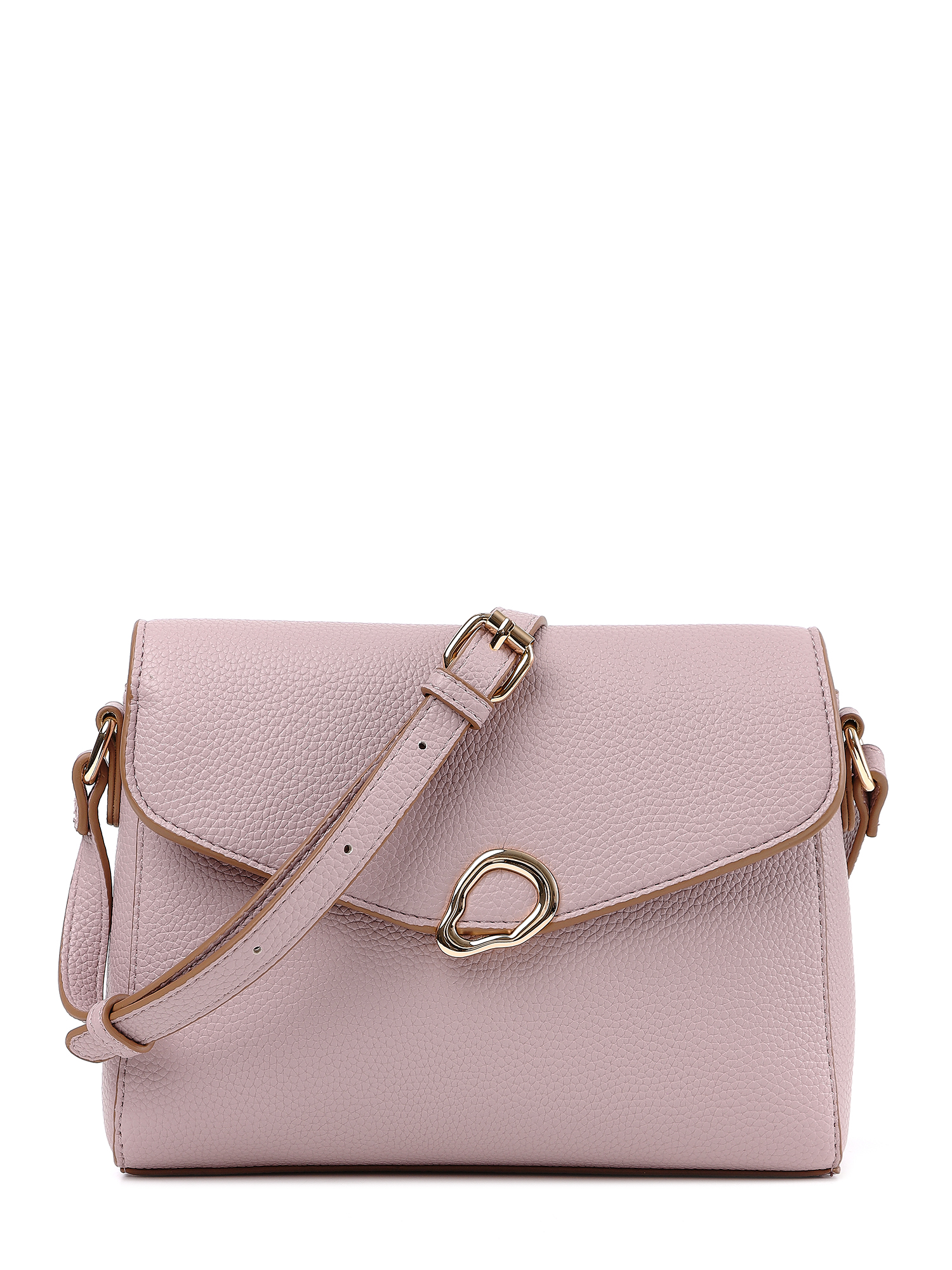 Классическая женская сумка кросс-боди с клапаном итальянского бренда FABRETTI из высококачественной зернистой экокожи пудрового розового оттенка.
