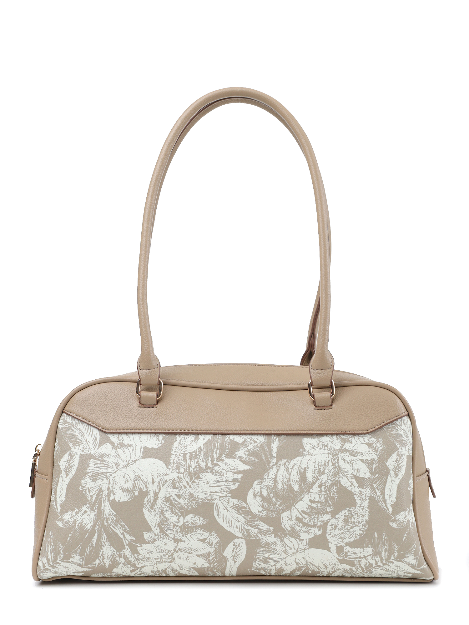 Классическая городская сумка багет итальянского бренда FABRETTI из зернистой бежевой экокожи, украшенной необычным растительным принтом. Простой и продуманный аксессуар, который подходит и к платьям, и к спортивному стилю. Светлая кожа и рисунок в виде листьев отлично подходят для летнего настроения.