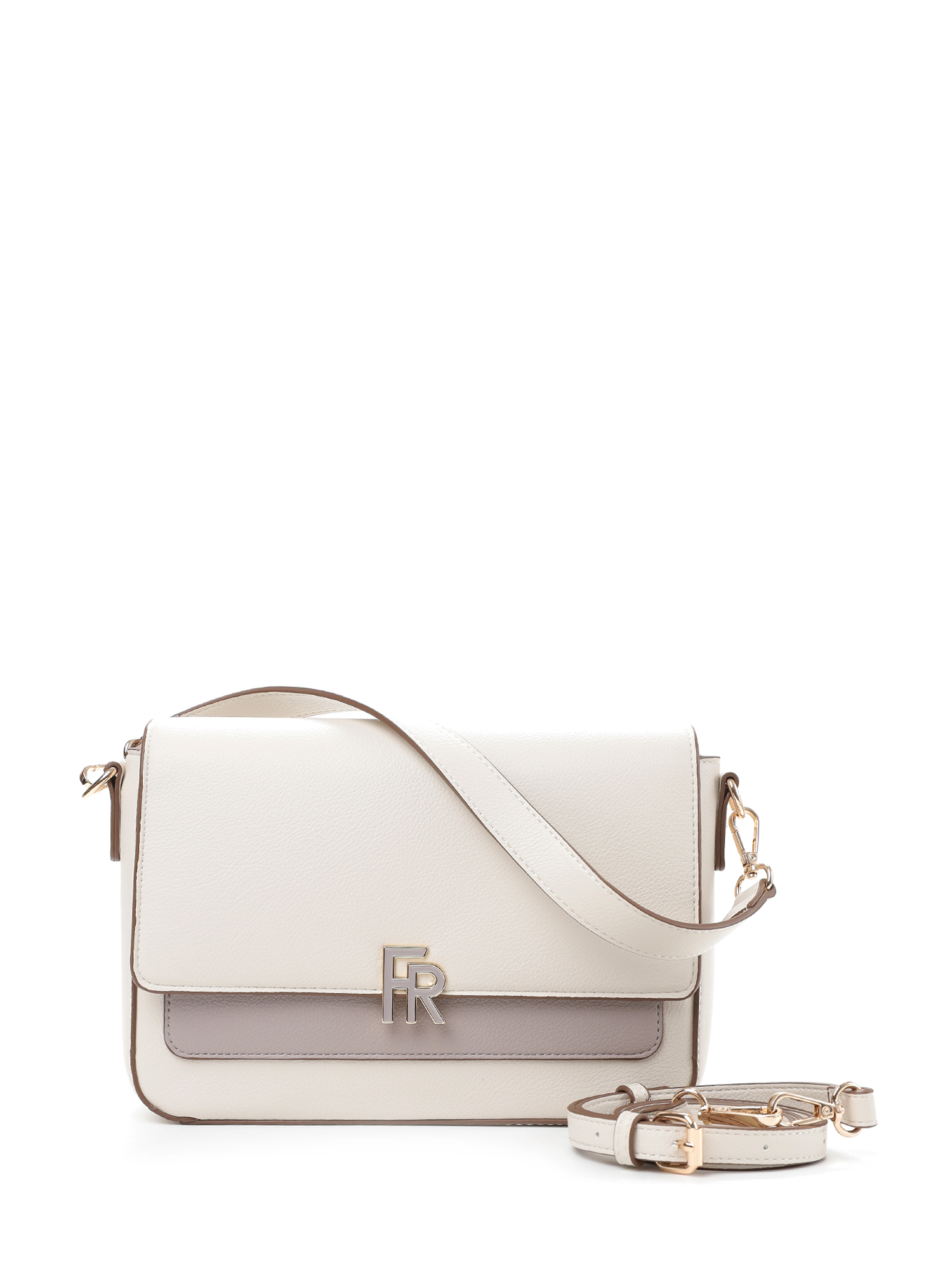 Прямоугольная женская сумка кросс-боди среднего размера с клапаном из коллекции итальянского бренда FABRETTI – образец лаконичности и стиля для повседневной городской моды. Она выполнена из зернистой экокожи молочного оттенка с пастельной розово-серой отделкой.