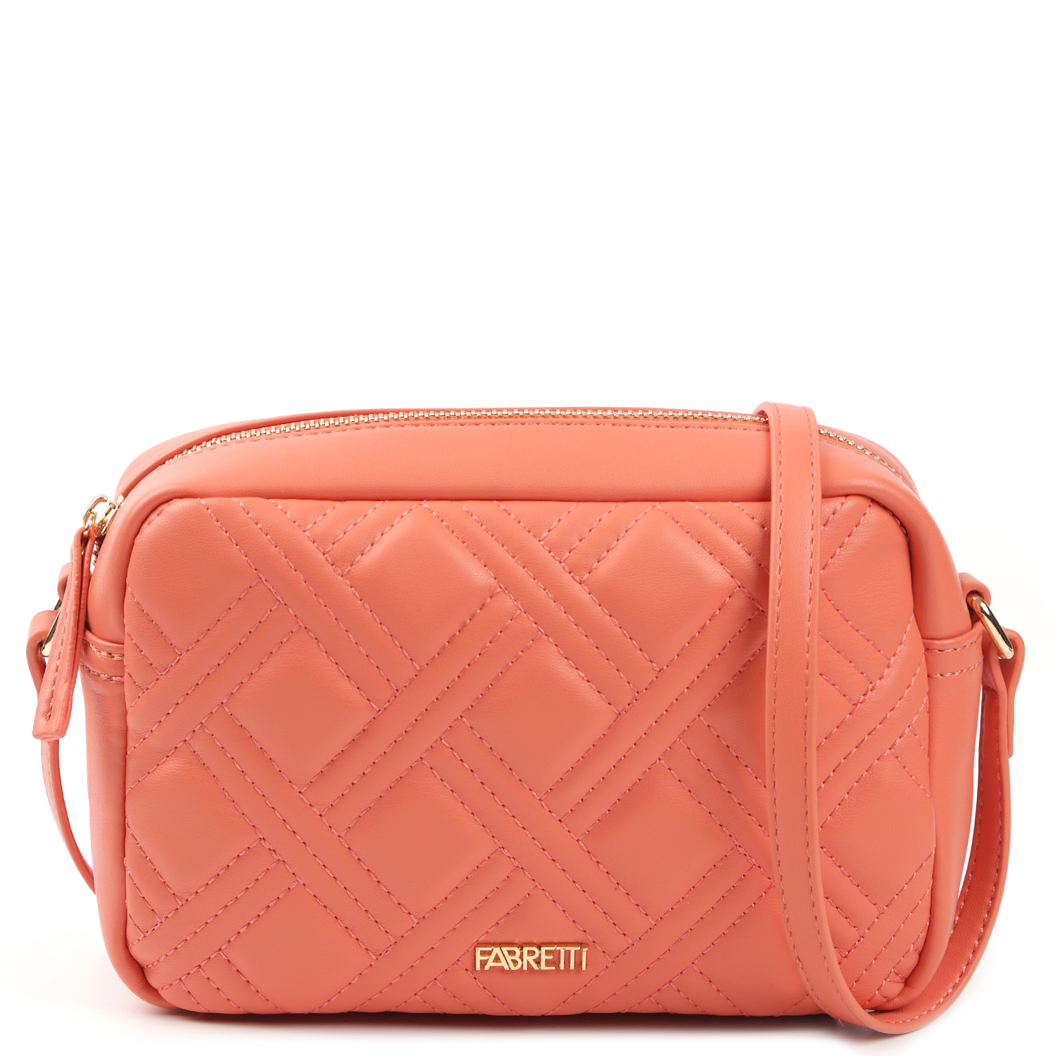 Стильная кросс-боди мягкой формы FABRETTI выполнена из экокожи в коралловом оттенке и декорирована геометрической стёжкой. Основное отделение закрывается на полукруглую молнию с удобным поводком. Внутри 2 боковых кармана для мелочей: открытый и на молнии. На тыльной стороне предусмотрен карман быстрого доступа на молнии. Плечевой ремень регулируется по длине, ширина - 1 см. Цвет фурнитуры - золото.