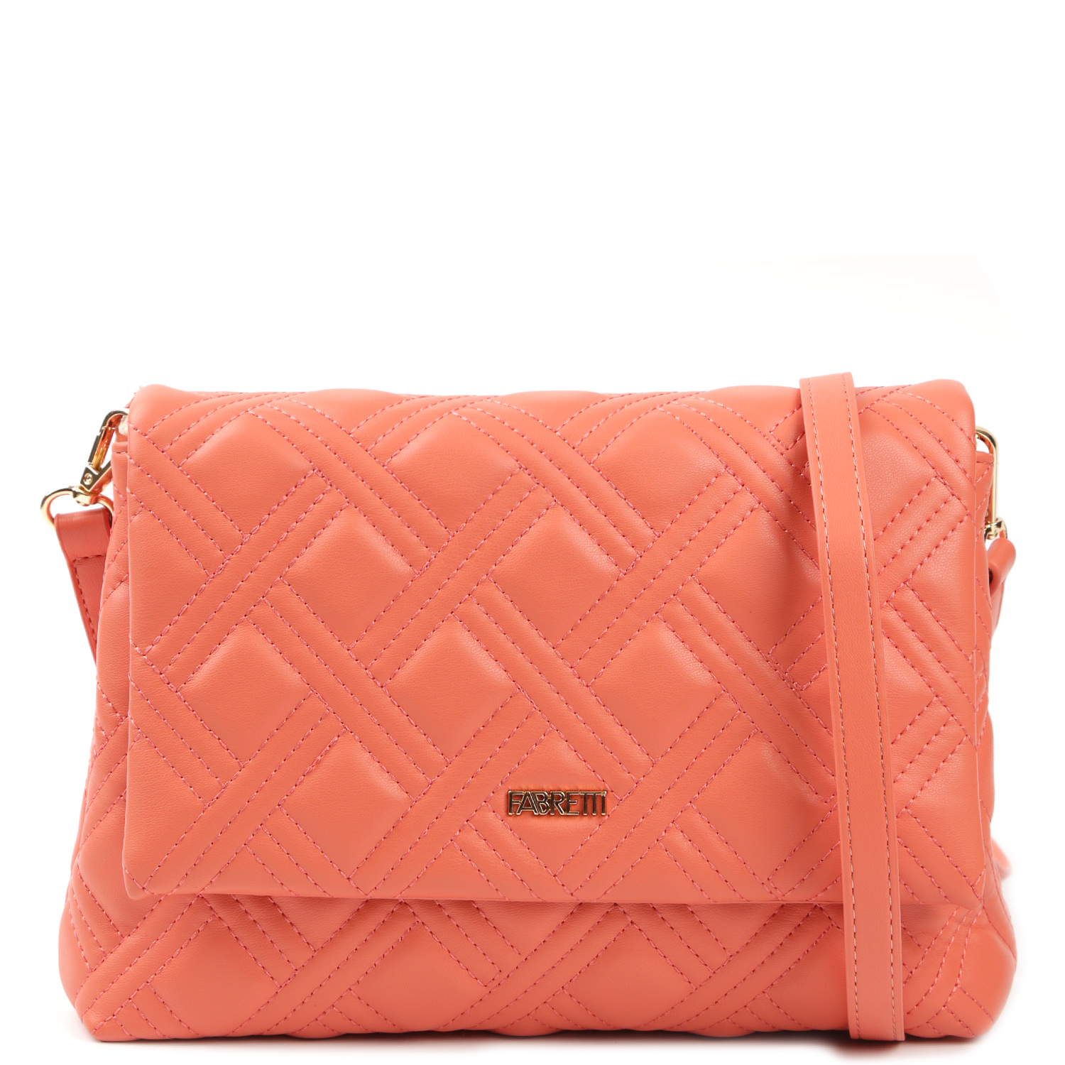 Стильная кросс-боди мягкой формы FABRETTI выполнена из экокожи в коралловом оттенке и декорирована геометрической стёжкой. Основное отделение закрывается клапаном на 2 магнитных копках. Внутри 2 боковых кармана для мелочей: открытый и на молнии. По бокам предусмотрена возможность регулировки объема с помощью кнопок. Съемный плечевой ремень регулируется по длине, ширина - 1,5 см. При необходимости его можно снять и носить сумку как клатч. Цвет фурнитуры - золото.