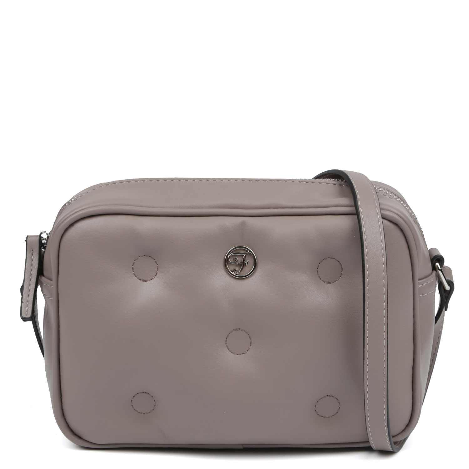 Вместительная кросс-боди FABRETTI в сером оттенке выполнена из стеганой экокожи нежной текстуры. Основное отделение закрывается на полукруглую молнию с удобным поводком. Внутри 2 боковых кармана для мелочей: открытый и на молнии. Плечевой ремень регулируется по длине, ширина - 1,5 см. Цвет фурнитуры - серебро.
