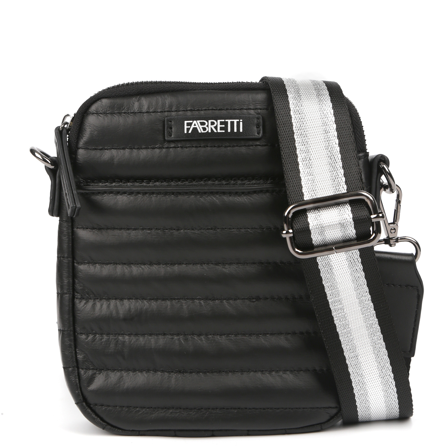 Компактная стеганая кросс-боди FABRETTI в черном цвете станет оригинальной деталью в образе. Модель выполнена из высокотехнологичного полиэстера, который устойчив к воздействию влаги и перепаду температур. В качестве декора выступает горизонтальная стёжка. Сумка закрывается на полукруглую молнию с удобным поводком. Внутри 2 боковых кармана для мелочей: открытый и на молнии. На лицевой стороне предусмотрен карман быстрого доступа на магнитной кнопке. Плечевой ремень регулируется по длине, ширина - 4 см. Цвет фурнитуры - серебро.