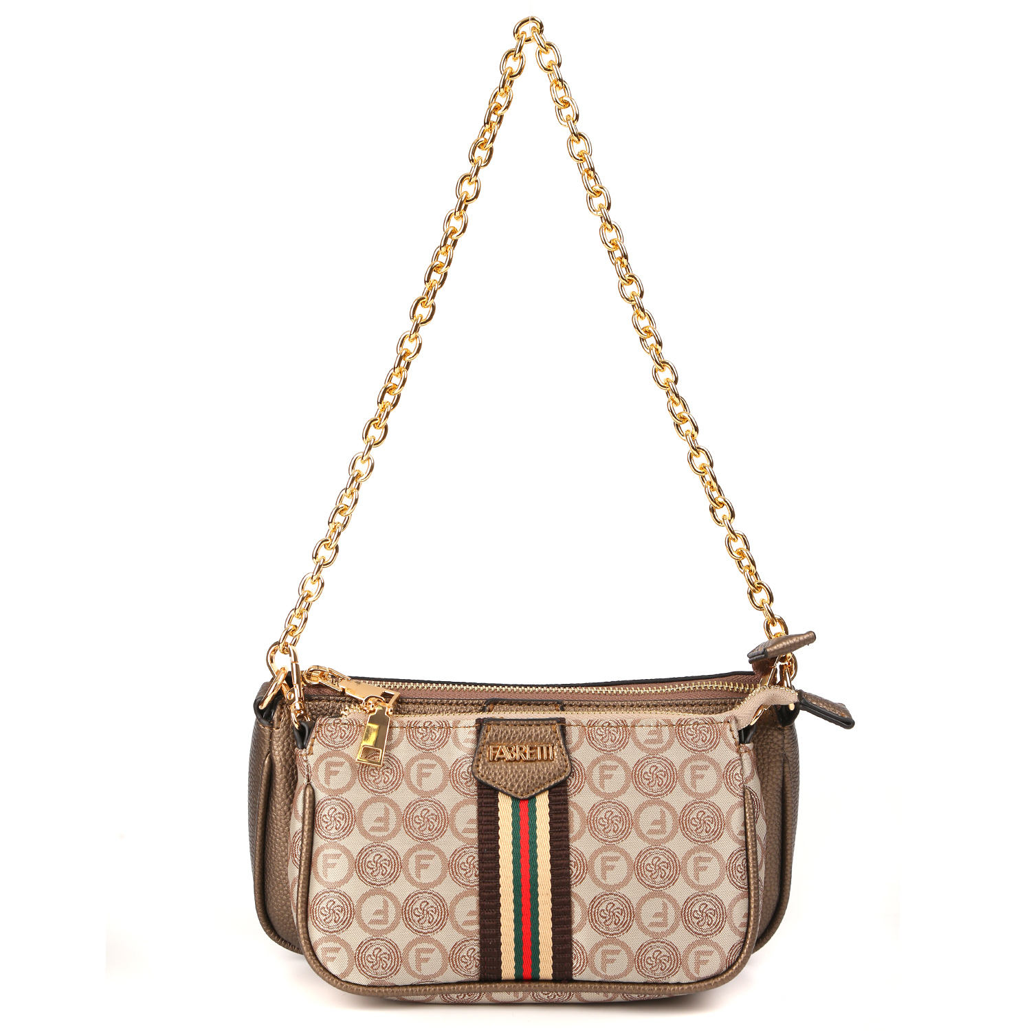 Функциональная кросс-боди FABRETTI в бежевом оттенке сочетает в себе 3 аксессуара, которые можно комбинировать между собой. Каждый элемент присоединяется с помощью карабинов. Основная сумка выполнена из экокожи закрывается на молнию с металлическим поводком. Внутри предусмотрены 2 боковых кармана для мелочей: на молнии и открытый. Размер: 25*14*5 см. Дополнительная сумочка выполнена из двухслойного материала - это текстильное волокно, дублированное с высококачественным полиуретаном посредством термической обработки. Закрывается на молнию и может быть использована отдельно в качестве миниатюрного клатча. Размер: 20*12*4 см. В комплекте идет съемная металлическая цепочка, которую можно использовать как декор или как ручку. А также съемный текстильный ремень (ширина - 4 см), длина которого регулируется. К нему крепится круглая монетница, размер 9*9*2 см. Цвет фурнитуры - золото.